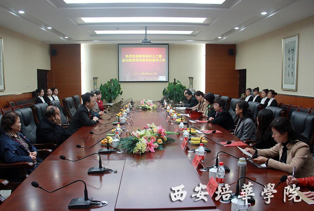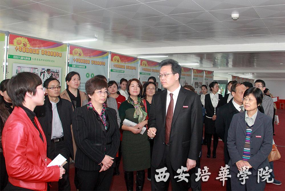 为迎接党的十八大胜利召开,10月31日,陕西省妇女儿童工作十年发展成果高校巡展首站走进我校,展示新世纪妇女儿童工作成果。省妇女儿童工作委员会副主任、省妇女联合会党组副书记、副主席井剑萍,省妇女儿童工作委员会专职副主任党洁,省妇女联合会组织部部长崔志伟,省妇女联合会组织部副部长、我校校友林海君,中国妇女报陕西记者站站长党柏峰等一行9人来我校参加巡展,我校理事长姜波,党委书记周庆华,常务副院长王拴才,女子学院副院长金沙曼、郝西燕及女子学院部分老师、学生热情接待了来宾一行并在第一会议室进行座谈。