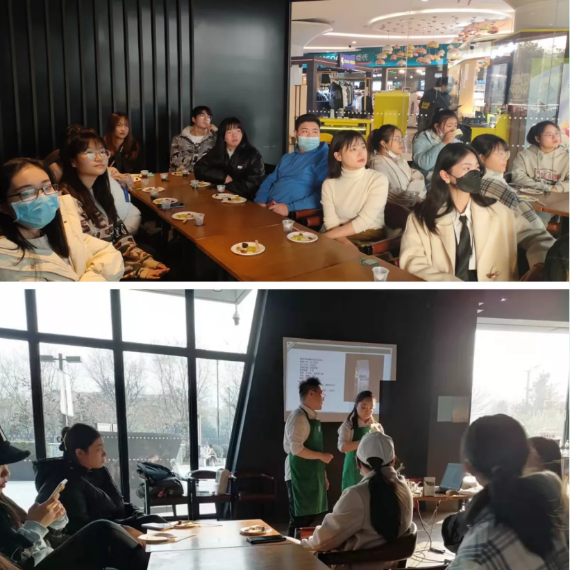 品尝完今日的咖啡后,高老师、孙老师和吕楠经理向学生们介绍了独特的星巴克文化以及他们同星巴克一起成长的心路历程。