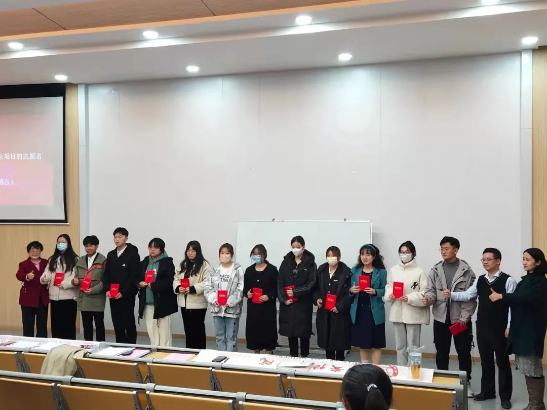 为参与普法项目的志愿者颁发证书