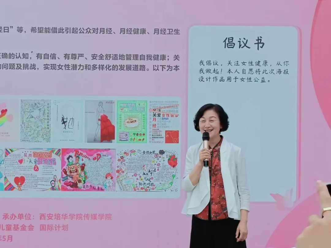 西安培华学院副校长刘越莲教授在参加活动时发表了热情的讲话,对评选作品的设计理念表示认可,对获奖选手表示祝贺。她讲到,月经曾经是一个忌讳的名词,不能在公众场合说出,更不会为此举行活动。