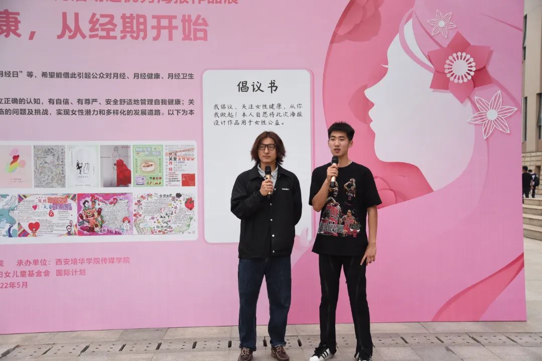 5月27日上午12点10分,西安培华学院在图书馆门口广场举办“关注女性健康,从经期开始”优秀海报作品展。活动由西安培华学院女子学院院长助理李蒙老师主持,西安培华学院副校长刘越莲、女子学院常务副院长王鹏、副院长班理、女子学院全体教师及学生代表参加