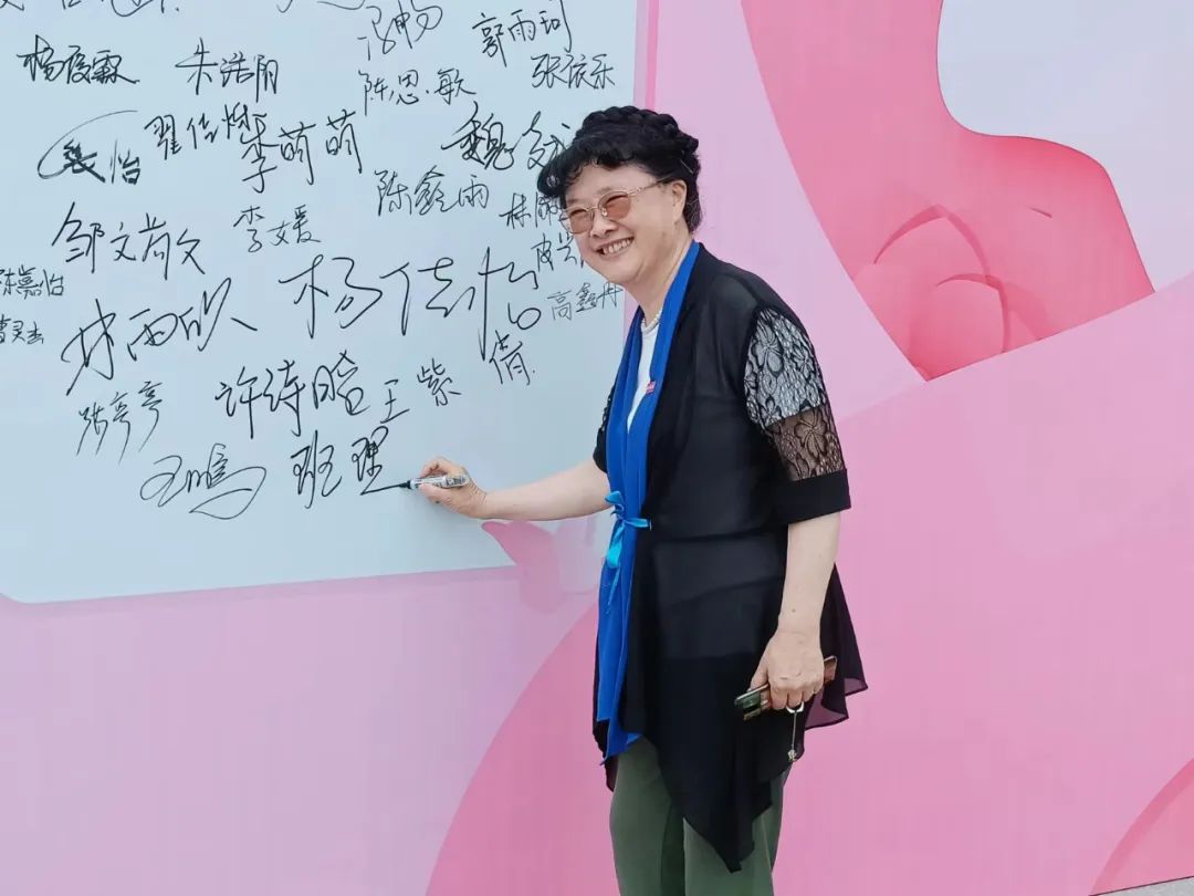 参赛代表们在自己的作品前发出倡议:“关爱女性健康,从你我做起!本人自愿将此次海报设计作品用于女性公益。”并在倡议书上签署姓名。通过参赛,选手们表达自己的创作初心,积极倡导为女性公益贡献自己的一份力量,展现当代大学生风采。