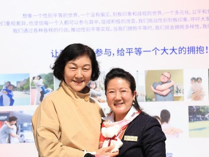 讲话结束后,企业家和同学们积极参加“拥抱性别平等”有奖趣味问答, 参与者从答题箱里随机抽取题目,回答正确就能获得小礼品。“什么是新时代四有女性?”“有理想、有品德、有诚信、有作为” “相比女性,一生中男性一定不会有的一个生理时期是什么?一般这个时期持续多久?”“孕产期,一般是十个月,即42周左右”……大家踊跃参与问答,和周围人拥抱、拍照留念。活动在一片欢声笑语中圆满结束。