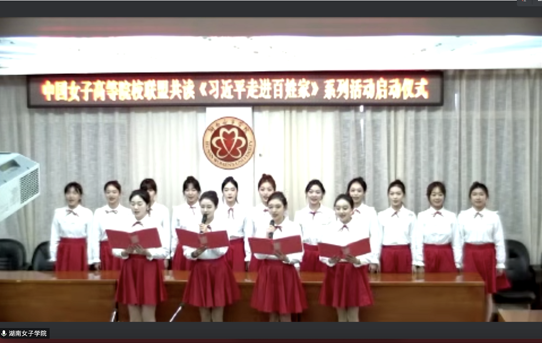会议上还播放了盟校学生共同诵读《习近平走进百姓家》部分章节的视频,以此来开启中国女子高等院校联盟共读《习近平走进百姓家》系列活动。其中西安培华女子学院聚星社录制了“习近平总书记走进陕西”的故事,展现了我们学院特有的风采和风格。