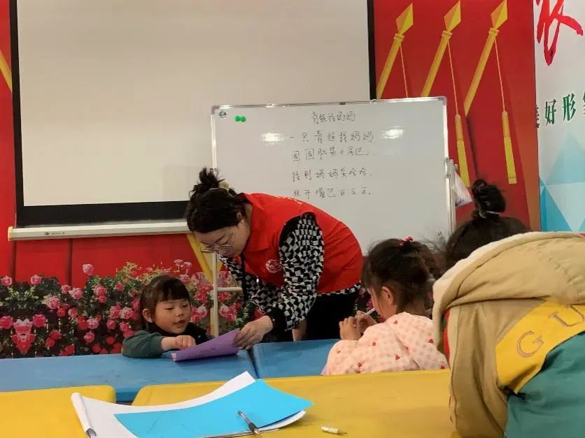 《小小主持人》是训练儿童口头表达和形象塑造的一门实际训练的课程,志愿者通过“青蛙找妈妈”的儿歌,带大家进行拼音a的训练,最后再从动作表情上教会大家如何从小小主持人的角度上去协调整体的动作。每一位小朋友都投入到了积极地训练和表演中,完成了《小小主持人》的第一课训练。
