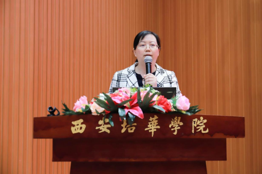 陕西省政府妇女儿童工作委员会办公室常务副主任薛燕敏出席此次活动并致辞,薛副主任在致词中谈到,我们党和国家历来高度重视妇女工作和妇女的全面发展,将男女平等作为一项基本国策大力推进,党的二十大第三次强调要“坚持男女平等基本国策,保障妇女儿童合法权益”。今年1月1日正式施行的新修订的我国妇女权益保障法里明确提出“国家将男女平等基本国策纳入国民教育体系,开展宣传教育,增强全社会的男女平等意识,培育尊重和关爱妇女的社会风尚。同时,也希望西安培华学院能一如既往地高度重视大学生社会主义核心价值观的培养,从促进大学生全面发展的角度,不断强化性别融合课程建设,提高学生社会性别观念,让更多的同学们认识和理解到男女平等基本国策的深刻内涵。通过举办形式多样的主题活动,积极宣传先进的性别文化,带动更多的师生为实现性别平等的美好愿景,加入到推进性别平等的行动中来。