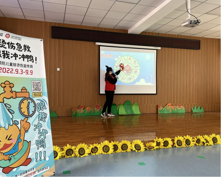 《幼儿园教育指导纲要(试行)》指出:“幼儿园必须把保护幼儿的生命和促进幼儿的健康放在工作的首位。”为进步有效预防幼儿的意外伤害,妥善处置紧急情况,提高全园教职工对意外伤害事故紧急救援的反应速度和协调能力。2023年5月11日,由中国社会福利基金会烧烫伤关爱公益基金主办、陕西仁爱儿童援助中心、西安培华学院女子学院巾帼志愿者、西安市长安区王曲街道协办的“预防儿童烧烫伤”活动,在长安区王曲街道中心幼儿园顺利开展了儿童课堂。