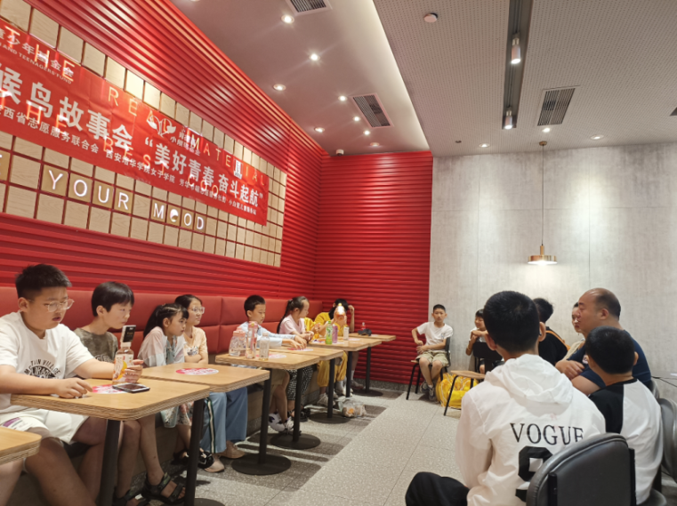 儿童们在肯德基壹洋堂店互相分享自己的故事。有因为在班里被人冤枉,朋友挺身而出,毫无保留地信任和支持他,在老师和同学面前维护他,使他非常感动,明白了好友间信任和支持的重要性。有因为数学题不会而烦恼不已,好友及时出现,帮助他解决问题时的开心,让他懂得了什么叫“赠人玫瑰,手留余香”。也有儿童分享了自己和老师间的故事,在成绩下滑时,老师对他时刻保持耐心,谆谆教诲,指引着他们前进的路…… 通过这些故事的分享,能让儿童学会感恩,在未来的初中生活里,他们能尽快适应新生活,时常记起这些曾经带给他们帮助和温暖的人,不论今后遇到什么困难,都能够勇敢克服。