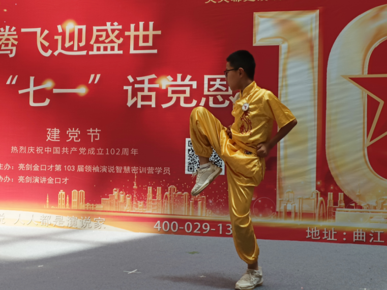 接下来进行的武术表演和诗朗诵,都体现出了这届儿童们的精神风貌,从郭启成等三位从小练习武术的小朋友们刚劲有力的武术表演中,看到了武术带给有志少年的一份自信和沉稳。郭启成曾带着长安地方武术洪拳,“去远方”到北京后,在天安门广场上表演过,还受到全国各地旅客的称赞,为皇甫村小白鹭儿童服务站争了光。罗宇晨、杨惠清小朋友给我们带来了《少年中国说》和《满江红》等经典朗诵节目,使大家感受到爱国少年的民族情爱国心。在班老师的亲自指挥下,儿童们高唱《中国少年先锋队队歌》“我们是共产主义接班人,继承革命前辈的光荣传统”......嘹亮的歌声响彻在壹洋堂大舞台的上空。