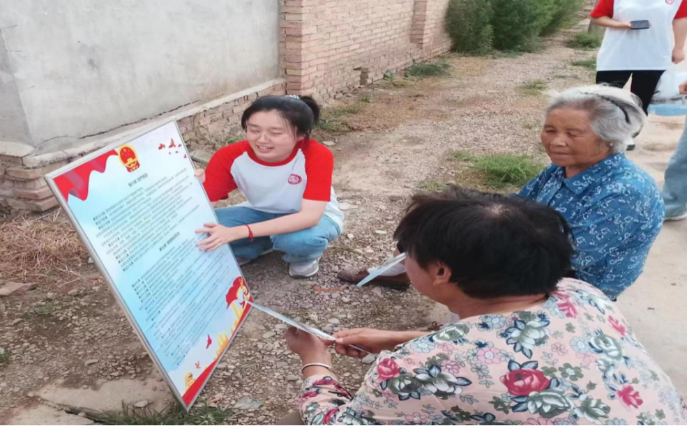 为深入学习贯彻党的二十大精神,认真学习习近平法治思想,合理宣传新修订的《中华人民共和国妇女权益保障法》,推动男女平等基本国策贯彻落实,大力营造尊法学法守法用法的良好法治氛围,促进工作场所性别平等等与女性相关的合法权益,媖才科普实践队开展了此次法律进村,法律进户普法宣传活动。