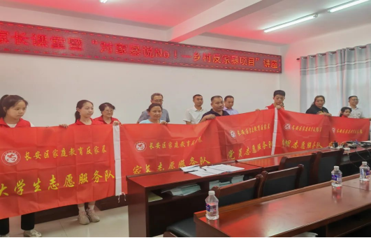 启动仪式上,陕西省妇联家儿部长褚海霏对王曲街道皇甫村儿童服务站在“平安家庭”、家长学校建设,反家暴、婚姻家庭矛盾纠纷化解、普法宣传等方面工作进行了调研了解,对引进社会组织、驻地高校参与乡村振兴发挥的积极作用给予肯定,希望以这次陕西妇女儿童发展基金会、西安市培华公益慈善基金会合作的乡村反家暴项目落地皇甫村、王曲村启动为契机,深化“平安家庭”建设,用家庭“微治理”激活社会治理“大效应”,以实际行动贯彻党的二十大精神,凝聚起磅礴“家”力量,构筑共建、共治、共享的家庭+社会治理体系。