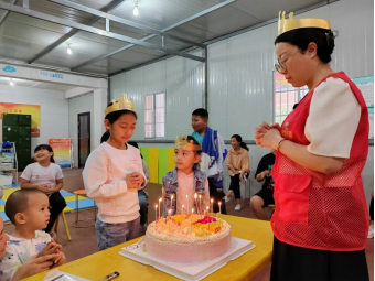 当小朋友们走进小朱鹮儿童服务站时都禁不住欢呼出声"哇,我们有蛋糕吃了",小小的脸上都洋溢着灿烂的微笑。在集体活动中,每一位小朋友都收到了精心准备的小礼物和美味的蛋糕,当月过生日的志愿者老师们也积极参与到了活动中,与孩子们一起唱歌、跳舞、讲绘本互动,让他们感受到了更多的友爱和关怀。