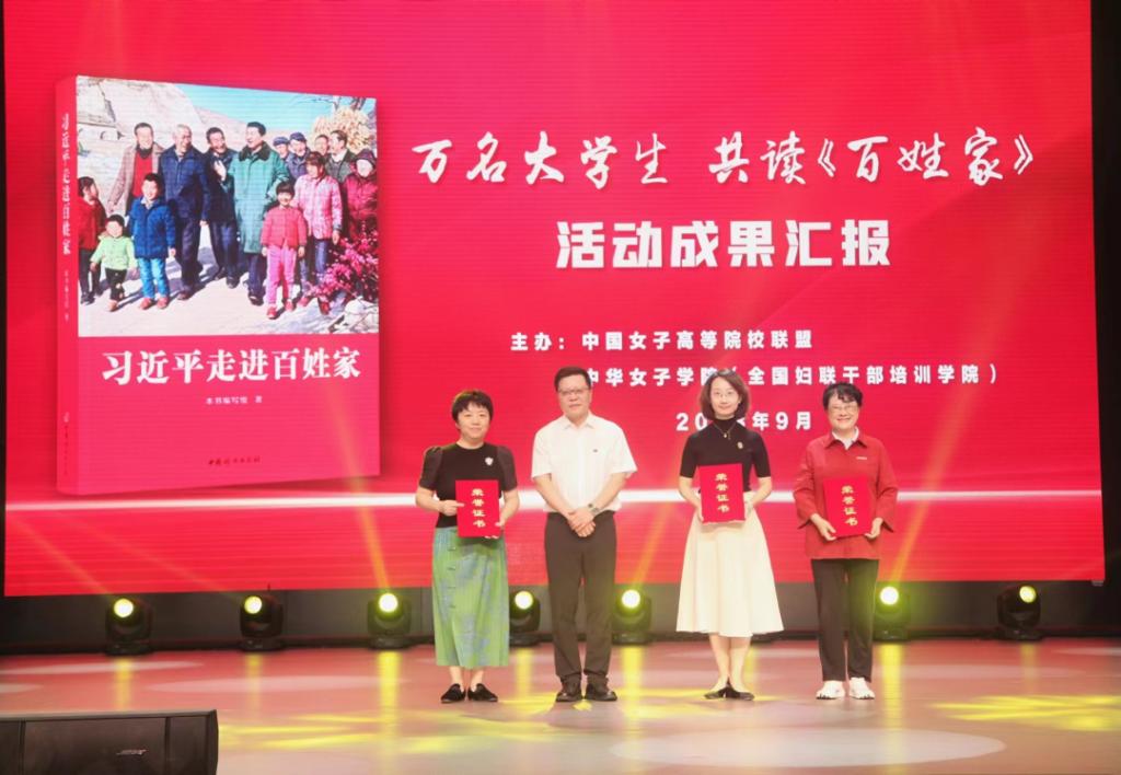 9月7日上午,“万名大学生,共读《百姓家》”活动成果汇报会在中华女子学院报告厅举行。展示活动由北京广播电视台主持人徐春妮主持。开场播放了视频短片,万名大学生共读《百姓家》活动回顾,通过一帧帧精美的照片,还有录像短片,回放了精彩的片段,激起了阵阵热烈的掌声。