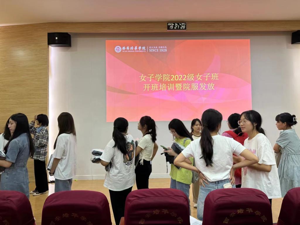 9月7日晚18:10,2022级女子班学生在博远楼J201齐聚,张文悦老师组织女生会成员为女子班进行院服发放。在这蝉鸣渐弱,秋意漫起之时,女子学院的同学终于换上心心念念的院服,灵动飘逸的裙摆将唯美淋漓尽致地挥洒,我们将共赴一场青春的宴席。