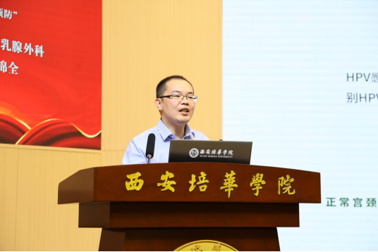 陕西省第二人民医院乳腺外科副主任医师牛锦全则聚焦乳腺癌防治,从自检方法、高危因素到诊疗技术,为在场师生进行了系统讲解。