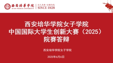 为贯彻落实党的二十大和二十届二中、三中全会精神,深入学习贯彻习近平总书记给中国国际大学生创新大赛参赛学生代表的重要回信和给大赛“青年红色筑梦之旅”大学生重要回信精神,推动创新教育贯穿教育活动全过程,充分发挥“以赛促学、以赛促教、以赛促创”功能,加强拔尖创新人才自主培养,加快推进科技成果转化落地,西安培华学院女子学院于2025年6月6日在博远楼2201举行了中国国际大学生创新大赛院赛。