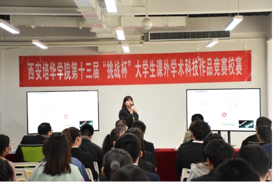 3月30日,西安培华学院第十三届“挑战杯”大学生课外学术科技作品竞赛校赛路演答辩在创客中心二楼培训厅举行,本次路演答辩邀请“挑战杯”省赛评委张伟老师及两位校内老师作为评审嘉宾。各项目团队分别从项目的背景、创新性、实用性等角度以PPT的形式进行了全方位介绍和展示。评委对每个项目的优缺点进行点评,让学生了解了自己项目存在问题和改进方法。