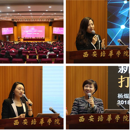 今日头条陕西区域唯一合作伙伴·西安微聚信息技术有限公司董事长、抖音陕西区域唯一合作伙伴·陕西目光传媒有限公司董事长牛蕾蕾做“新时代——机遇与挑战”主题分享;培华2008届校友,陕西奥瑞诚实业有限公司总经理魏丹做“新女性——选择与坚持”主题分享;SAP大学联盟大中华区总监,西安培华学院客座教授杨焜做“新思路——视野与格局”主题分享;西安水木投资咨询有限公司总裁沙清华做“新机遇——成功与梦想”主题分享。