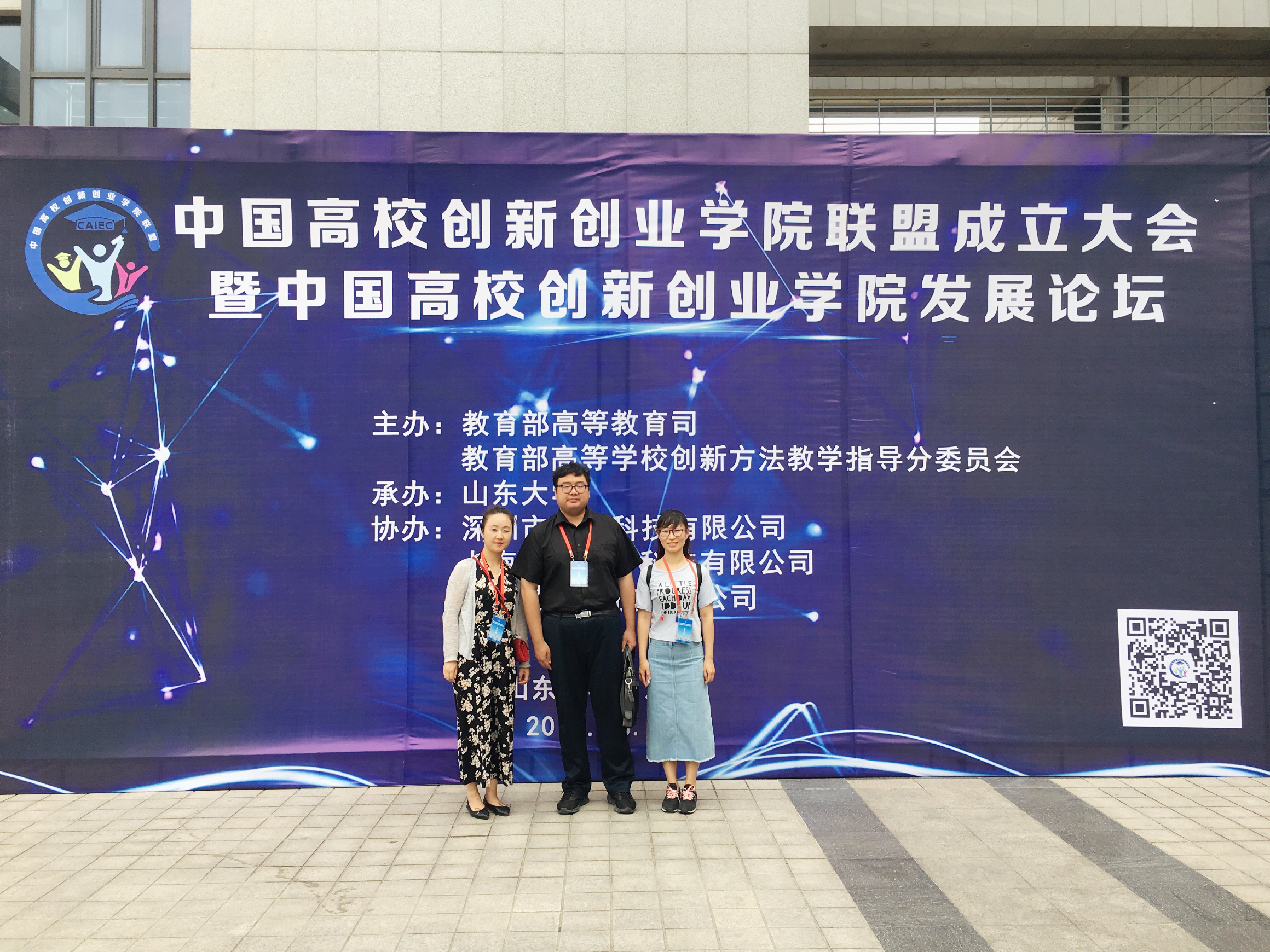 6月2日,由教育部高等教育司,教育部高等学校创新方法教学指导分委员会主办,山东大学承办的中国高校创新创业学院联盟成立大会暨中国高校创新创业学院发展论坛在山东济南举行,我校产学研协同创新中心薛舒凡老师,传媒学院王瑞老师,医学院黑一宏老师代表学校参加了本次成立大会并参观山东大学众创空间。