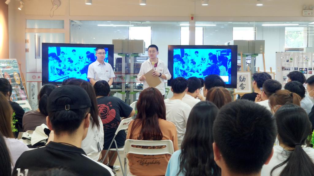 活动现场,王子健老师首先通过自己的求学和从业经历,用行动讲述艺术、工程和设计的融合之路,并用通俗易懂的语言,从众多案例出发,分析产品设计过程中设计构思的递进关系,全面科普工业设计的相关知识和参赛技巧。乔木老师则通过现场互动方式,讲述自己获奖作品的创意来源和心路历程,并基于学生原理样机作品,分析提升改造思路的设计应用方向,进一步提高了现场同学们的设计认知、拓宽思路和视野,为参赛备赛工作打下良好基础。