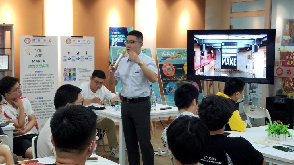 为充分调动大学生参与第六届全国大学生工业设计大赛的积极性,提高备赛项目团队的创新精神和设计能力,6月16日晚,我校创客中心于开放创造实验室内成功举办全国大学生工业设计大赛报名宣讲会暨培训会,特邀陕西省工业设计协会副秘书长、陕西省非物质文化遗产研究会理事、西安设计联合会理事及国际合作部主任王子健老师,西安市机械工程学会工业设计分会理事、中国优秀工业设计奖、全国美术作品展、台湾光宝创新奖、陕西旅游商品创意设计大赛创意金奖获奖者乔木老师开展主题分享,逾40名师生报名参加了此次宣讲会暨培训会,活动由创客中心干事王旭东主持。