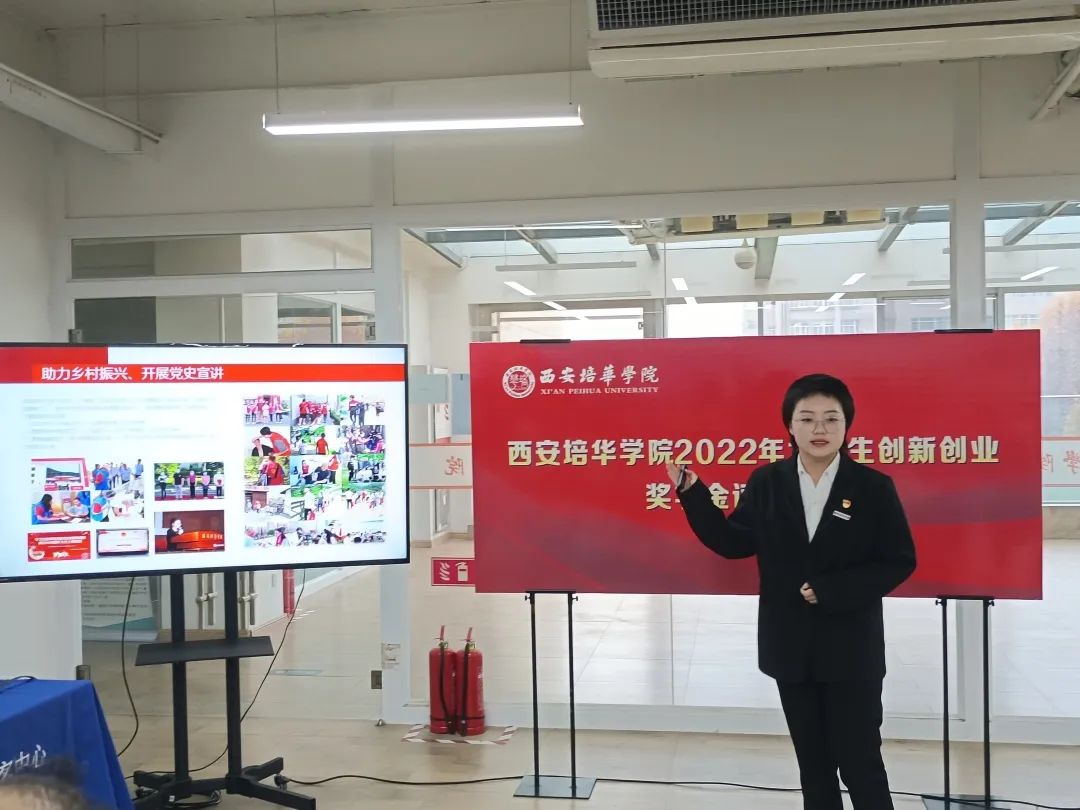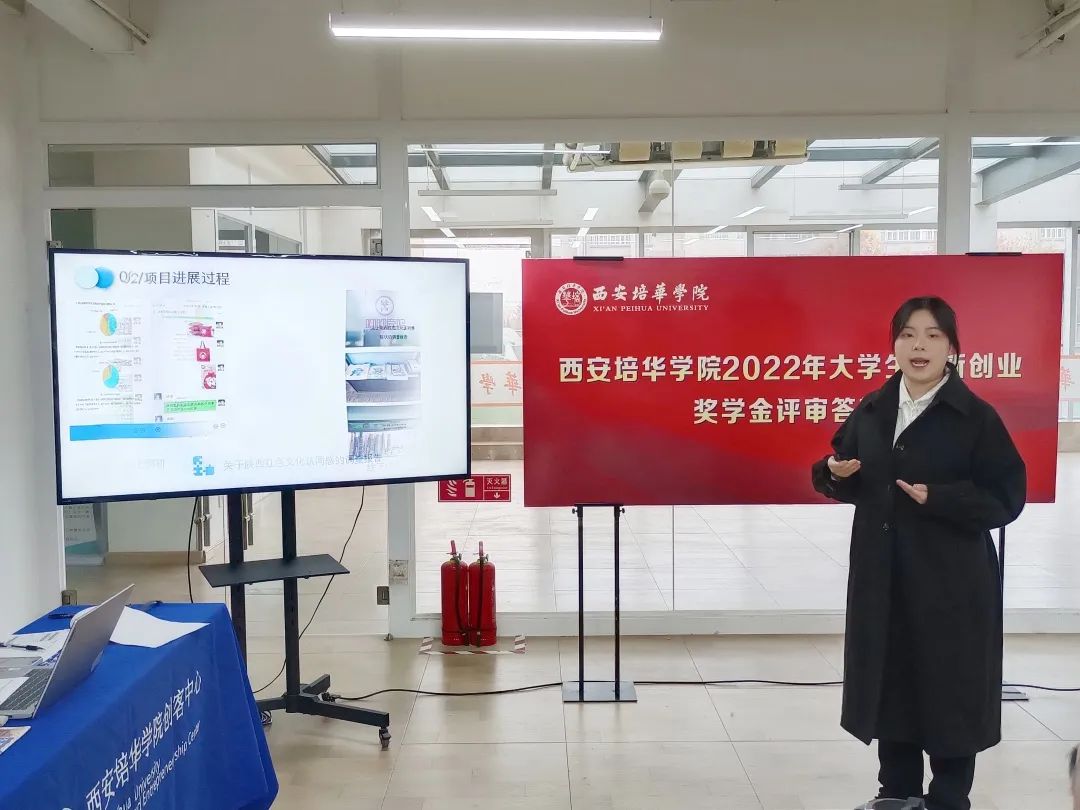 为进一步深化学校创新创业教育改革,激发学生创新意识,培养学生创业精神,树立典型,引导、鼓励和支持在校大学生开展创新创业实践,根据《西安培华学院大学生创新创业奖学金评选办法》,学校于11月23日在创客中心举办了“西安培华学院2022年度创新创业奖学金评审答辩会”。奖学金候选人就创新创业成果、示范带动效应、团队建设等方面进行了充分汇报。