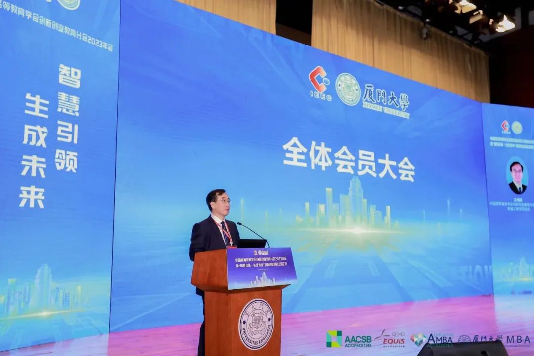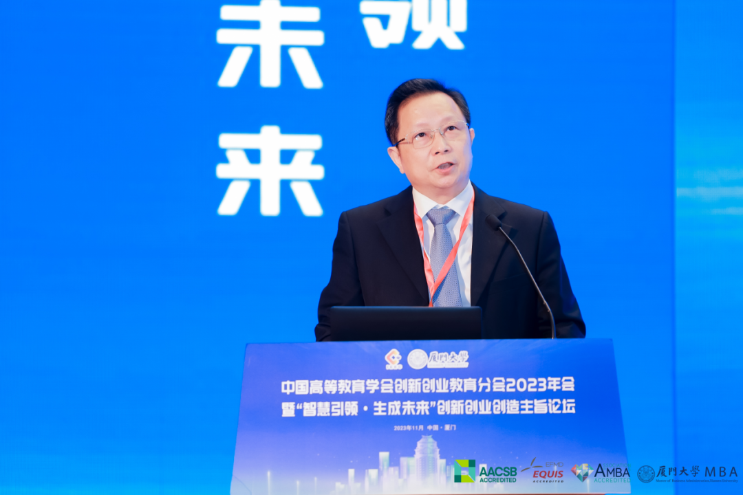 2023年11月3日-5日,中国高等教育学会创新创业教育分会(以下简称“分会”)2023年年会暨“智慧引领 生成未来”创新创业创造主旨论坛在厦门成功举行。会议由分会和厦门大学共同主办,由上海财经大学、西北农林科技大学、东北大学、广西师范大学、温州大学、唐山工业职业技术学院、宁波职业技术学院、厦门大学管理学院、新未来在线(北京)教育科技有限公司联合承办。分会副理事长符惠明、黄贵洲、李东、李俊峰、刘铸、王增国、邬小撑、杨芳、张建军、张玉利、张竹筠,秘书长刘志阳,监事黎开谊、赵旭,分会437家会员单位代表以及专家学者、企业高管和师生近千名现场参会。