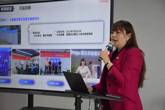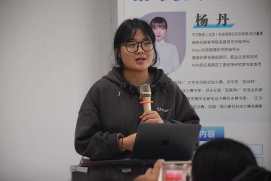 本期培训班以“领会参赛规则提升参赛能力”为主题,以主题讲座、实践课堂、现场教学和互动交流等多种培训形式开展。邀请了可可智度(北京)科技有限公司总经理/执行董事、高校创新教育联名服务平台秘书长杨丹女士。杨老师富有实践经验,分享的参赛技巧让全体学员感到“干货”满满、深受启发,掌声不时响彻讲堂。