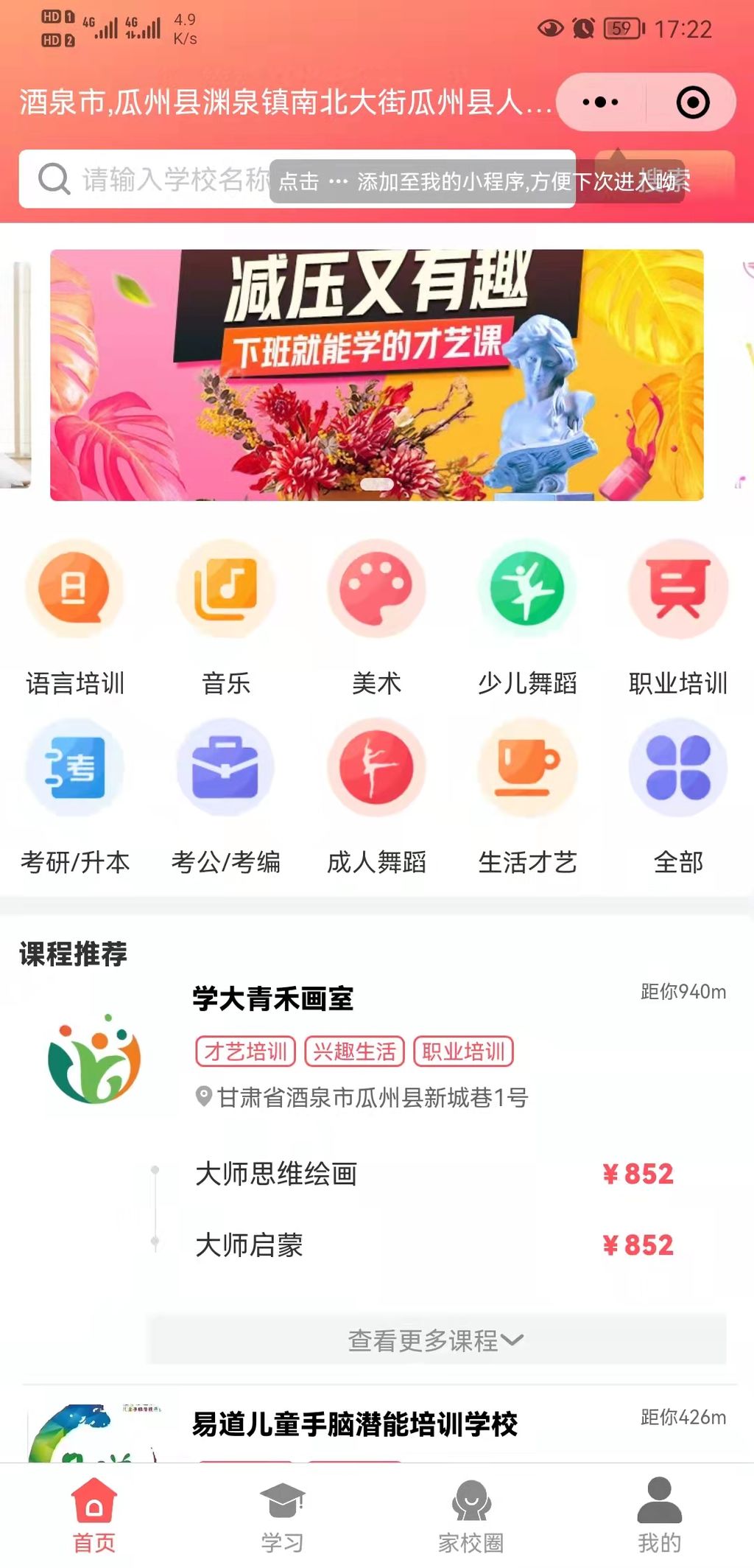 项目创新点及成果:本小程序集招生引流和学员管理系统为一体,是一款门户类综合性平台。其中,我们推出了拼团砍价活动,有效发挥微信好友关系,从而实现机构的招生引流以及品牌效力的提高。