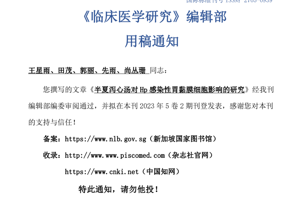 项目创新点及成果:半夏泻心汤具有副作用小,成本低,不易耐药的优势,从分子层面研究半夏泻心汤的治疗机制,为治疗幽门螺杆菌感染提供新思路
