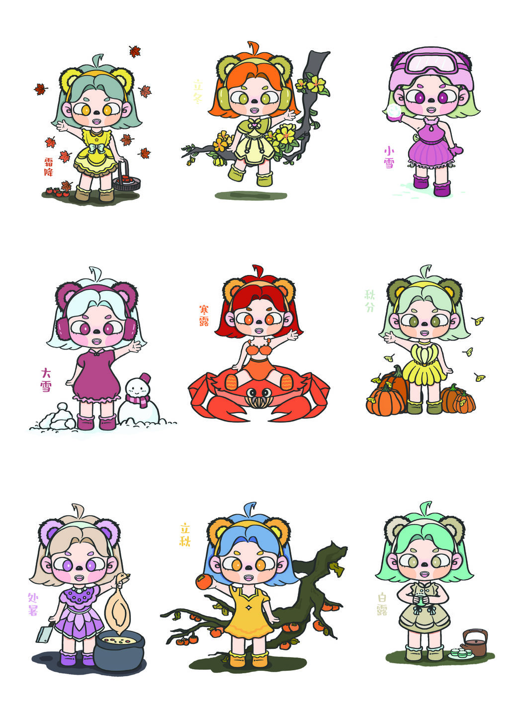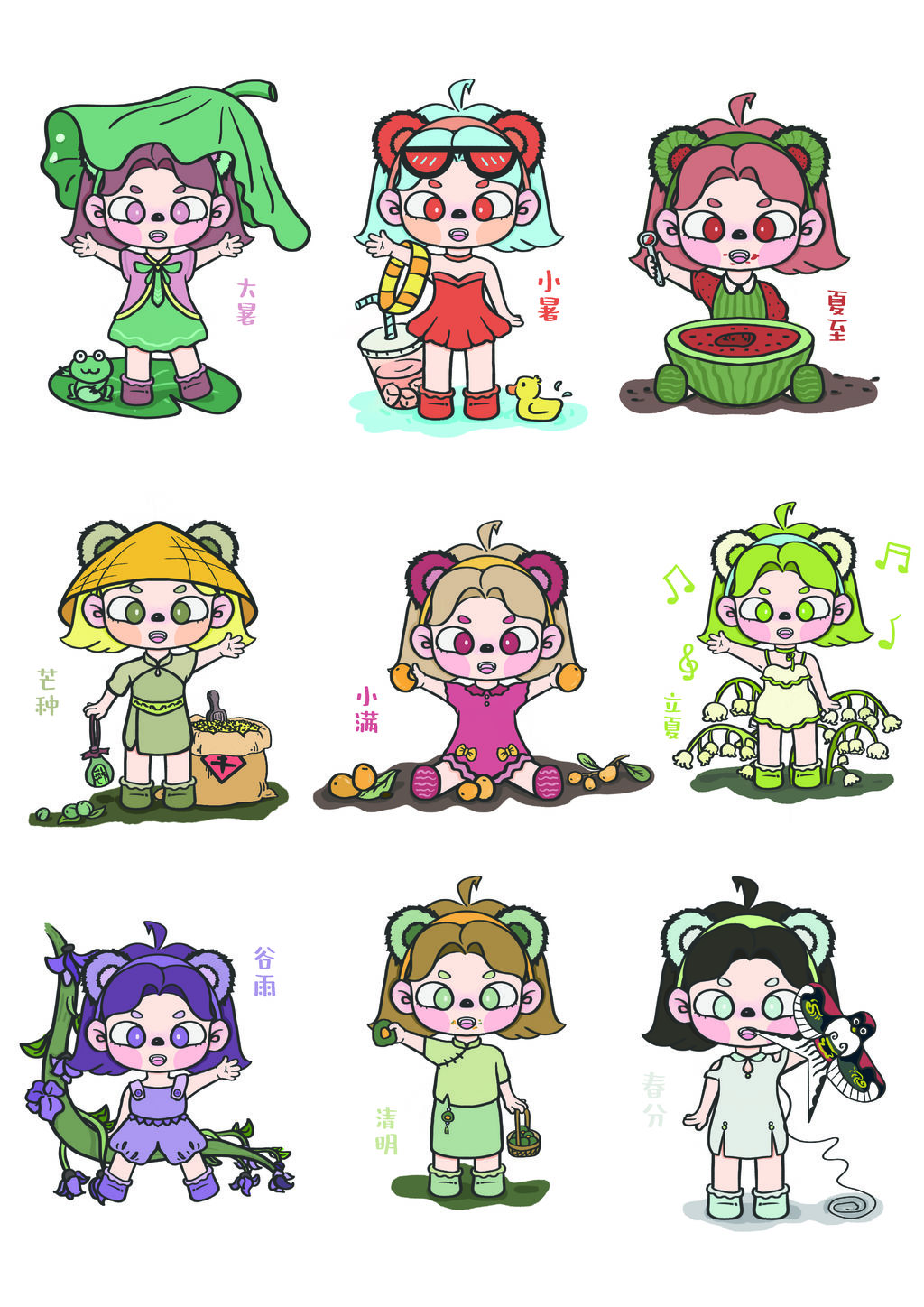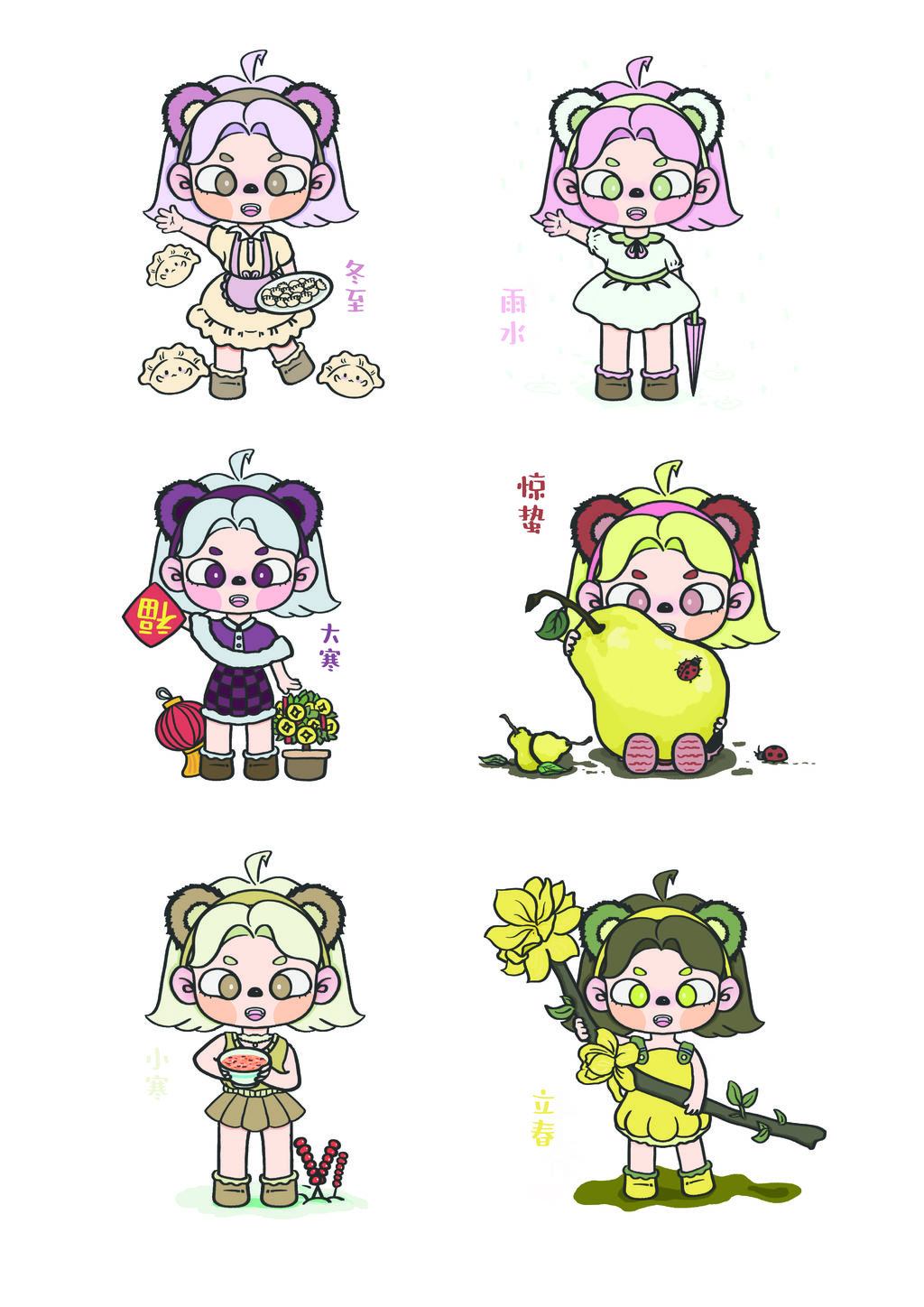 项目创新点及成果:以表情包的形式进行宣传,表情包已经成为当下的一种“流行文化”,受众群体范围大,从文化转型上求生路,要发挥原有文化的特长。伴随优秀的传统文化与新起的潮流文化将大熊猫和二十四节气再度“重生”。以此为基点对节气进行创新再设计,让节气文化和国宝以日常系列表情包的形式展现在大众的眼前。