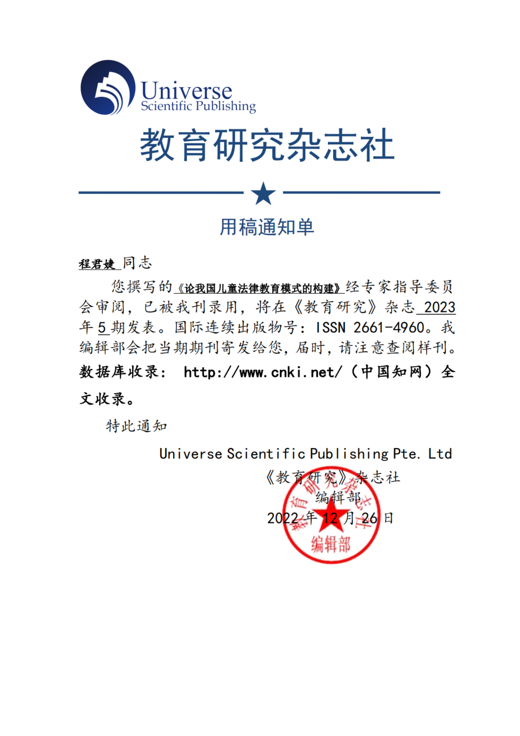 项目创新点及成果:采用PPT课件授课,用通俗易懂的语言讲解儿童身边的法律;制作法律知识绘本及普法视频,调动兴趣,实现低成本高效率的普法;进行模拟情境的互动,实现法律与现实的结合;定期深入儿童教育机构进行普法宣传及普法调查。
