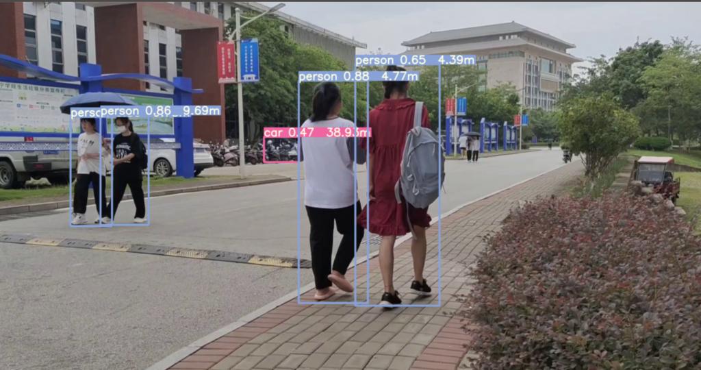 内容:对排队时队列中的人员进行信息的采集和提取;对队列中的人员间隔距离和个体特征进行检测和判断;收集周围环境音;筛选出行为不符合防疫规范的人员并精准提醒到个人;如果有系统识别到超出15秒提醒依然没有遵守要求的人员,则向值守摄像头显示画面的人员发送短信提示,并拍照留存个人信息。