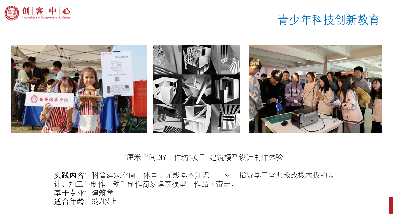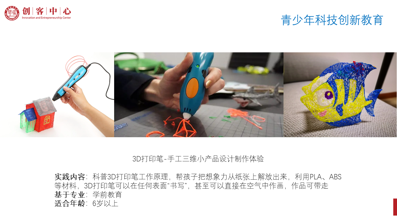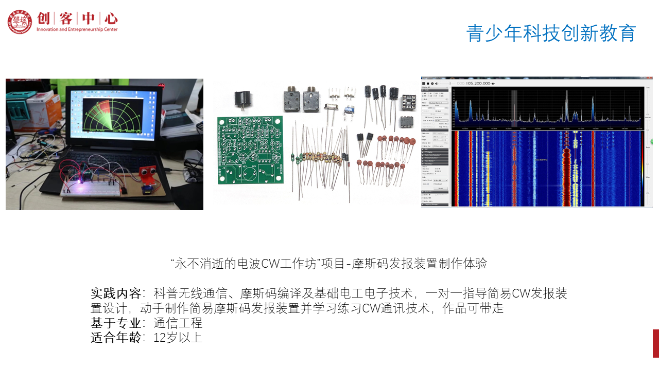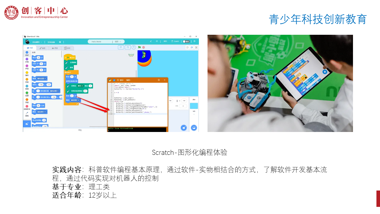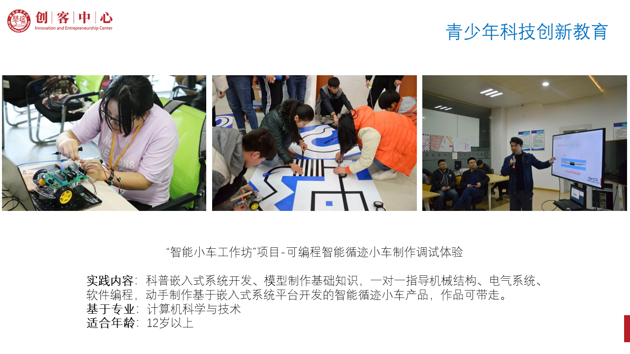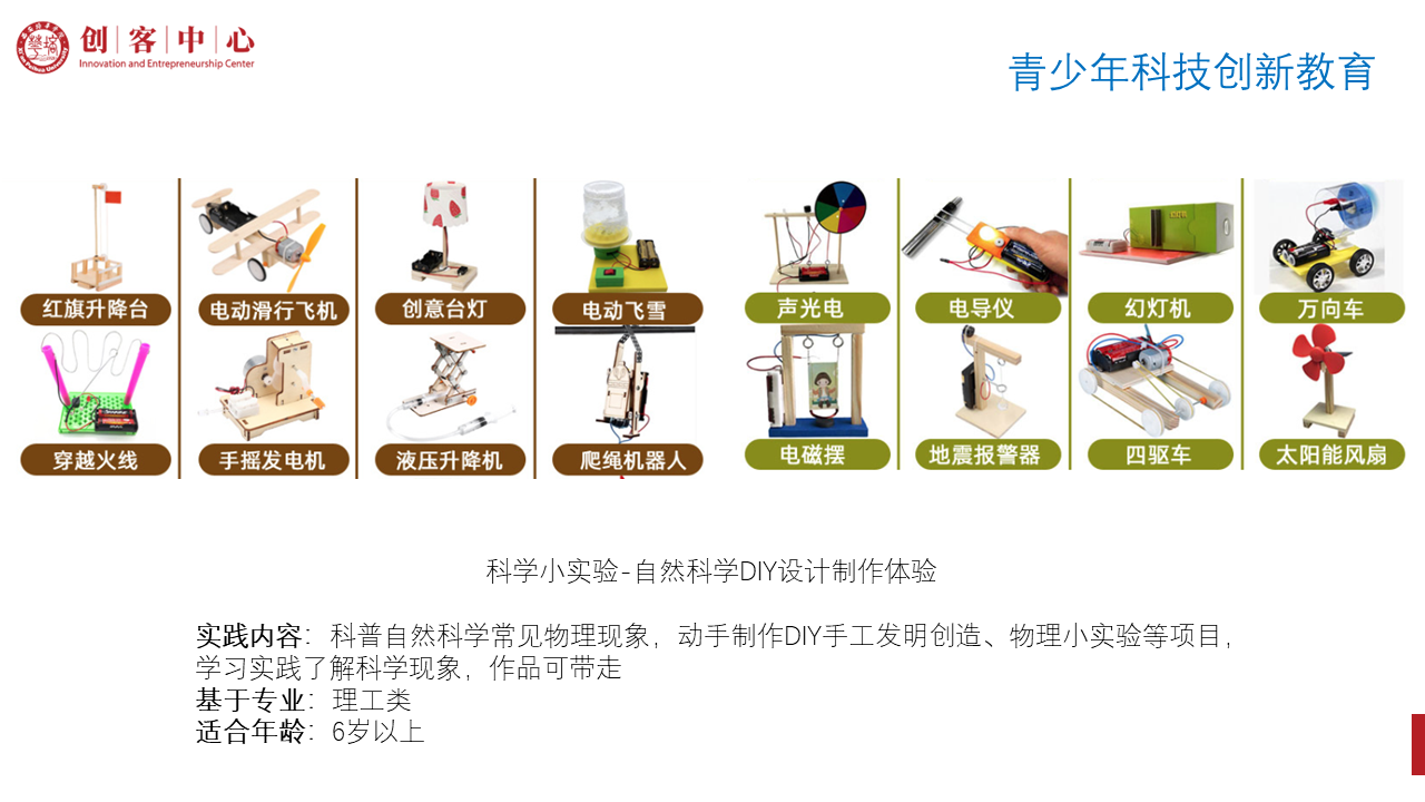 课程目标:面向青少年定制开发围绕科技创新与技术应用主题的教育体验项目,提升青少年动手实践能力、系统思考能力、团队协作能力和表达能力。
