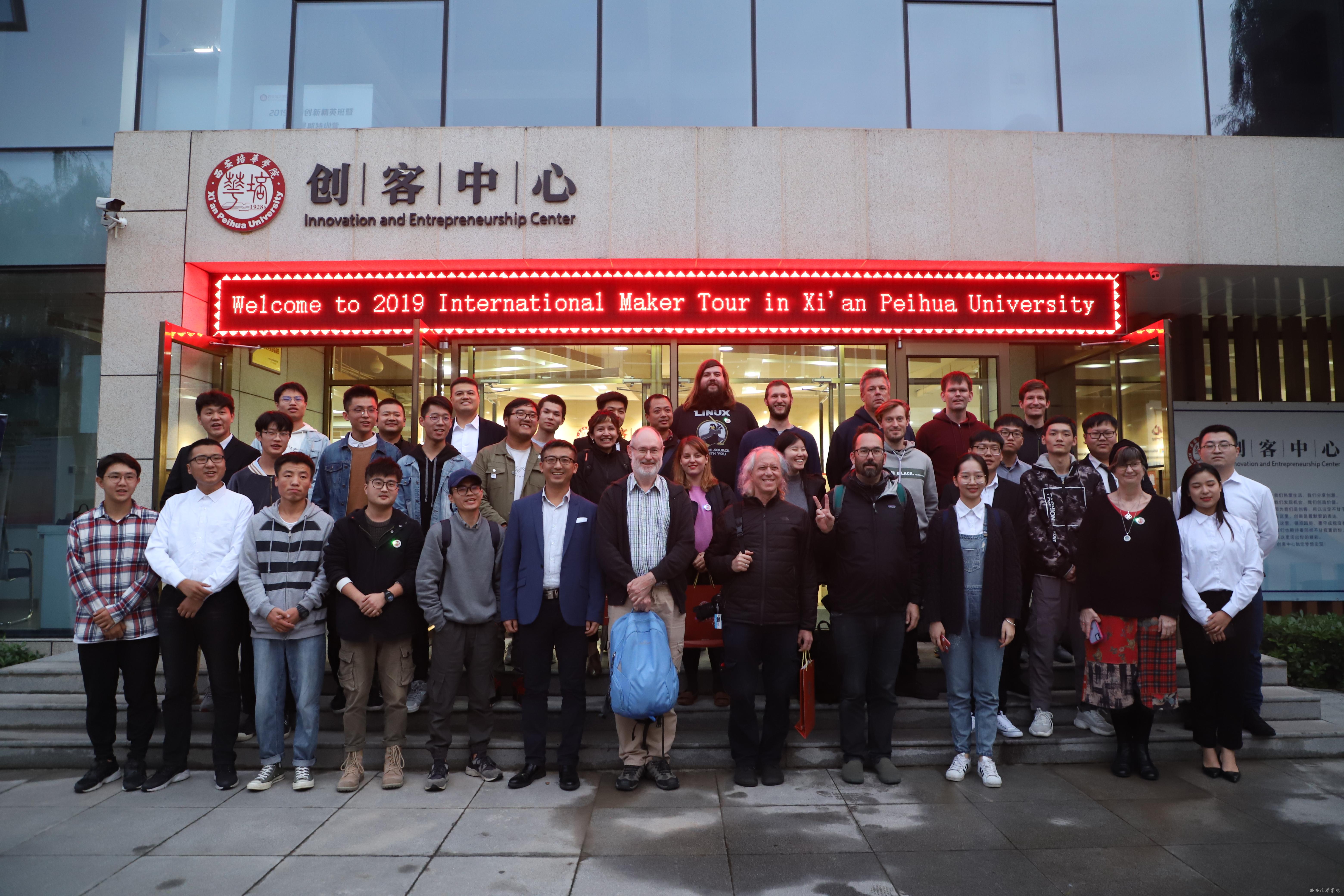 近日,“2019国际创客行-西安培华学院站”在我校成功举办,该活动由具有“创客运动教父”之称的Mitch Altman(米奇•奥特曼)带队,来自美国、德国、比利时等国家的12位国际知名创客嘉宾,莅临我校创客中心参与包括师生创客座谈、科学普及项目交流、科技创新项目研讨、开放创造实验室(Fablab Peihua)参观等活动,我校共推荐50余名师生创客代表参会。