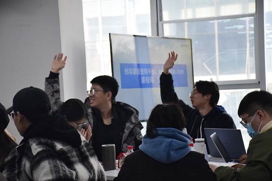 为锻炼学员实践能力、检验课程效果,课程中老师将学员随机分为13个项目组,各项目组依据课程所授技巧现场模拟选定参赛项目,对项目背景、内容、发展趋势等方面作以简单阐述,各组之间互相给予意见和建议。