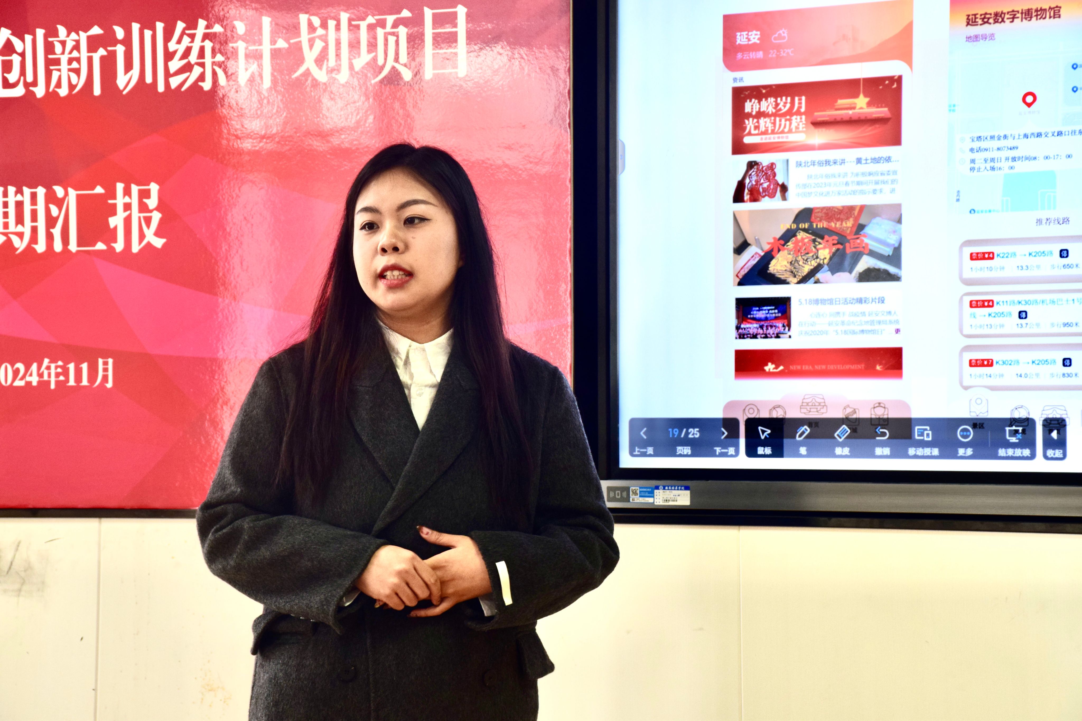 2024年11月6日,为了提高大学生创新训练计划项目研究质量,加强项目经验分享与交流,及时发现和解决存在的问题,确保项目顺利进行,学校开展了大学生创新训练计划项目中期检查答辩评审会。本次评审会邀请张琨、杨柏欢、史敏韦蕊等10位校内创新创业导师担任项目中期检查组专家。各项目组全体成员参加了此次中期检查答辩评审会。
