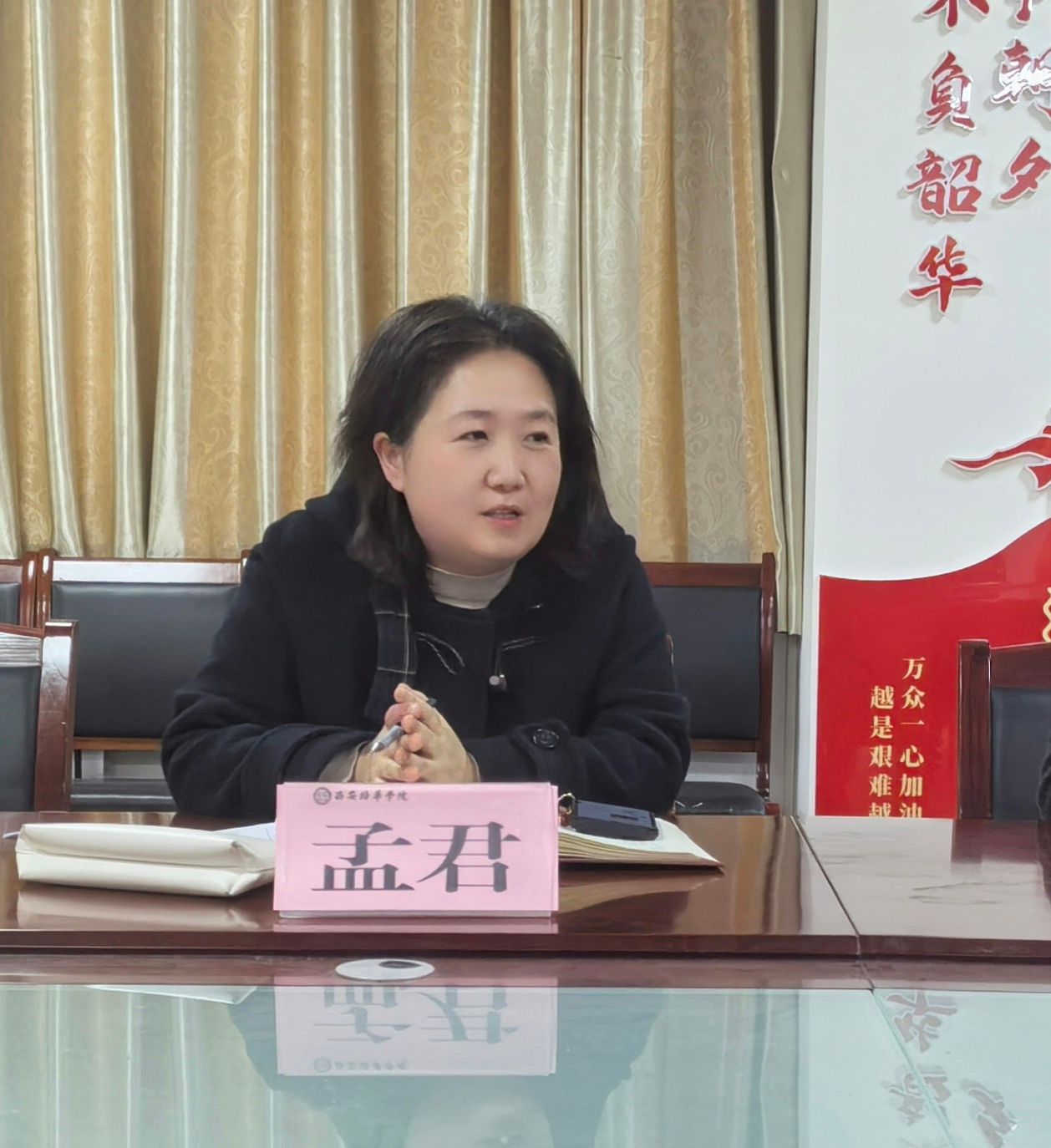 随后,吴春娜助理对上学期末系部调整情况进行统一说明,希望调整后大家团结一致,努力工作。基于学校和学院的高质量发展目标,建议各位老师进行团队协作,积极申报各类科研项目,完成高质量的科研成果。并结合当前形势,鼓励青年教师积极申报科研项目,不断提升科研能力,增强自身的核心竞争力,为学校的发展贡献自己的力量。