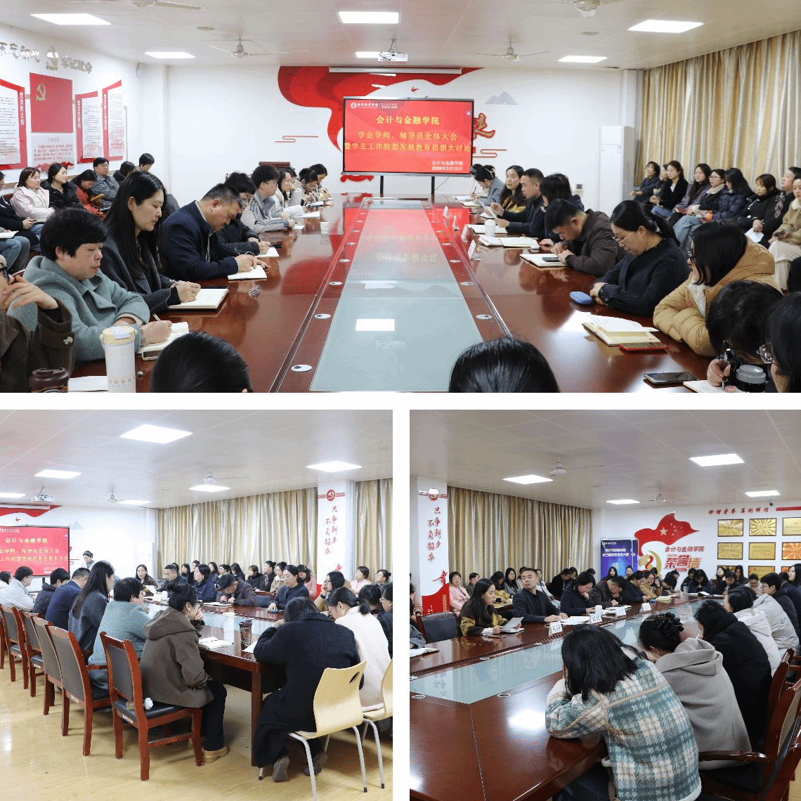 此次会议既是学院落实学校学生工作转型发展的具体行动,也是深化教育思想大讨论、凝聚协同育人共识的重要举措。通过本次会议,全体学业导师与辅导员进一步明确了工作方向、育人职责,凝聚了工作合力。未来,会计与金融学院将以此次会议为契机,持续深化育人机制改革,推动思维转型、举措转型、素质转型,以高质量的学生工作与人才培养成效,助力学校教育高质量发展,培养更多会计与金融领域优秀人才。