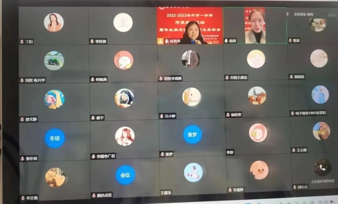 2022年10月17日,西安培华学院与泰盈科技集团、翼火教育集团校企合作项目正式启动,以“校中企、企中校”的校企合作模式,将企业项目落地到“校内职场”,给学生提供真学真做真练的真业务,经过学院和企业的共同努力,校企合作项目顺利完成。为了对本次校企合作情况进行总结,为以后开展校企合作积累经验,会计与金融学院于2023年1月10日下午4:00召开校企合作总结会暨优秀实习生表彰会。本次会议由会计与金融学院市场营销专业杨艳萍老师主持,参加会议的有会计与金融学院科研副院长丁阳、电子商务专业实习负责老师李欣资、金融工程专业实习负责老师楚文静、国际经济与贸易专业实习负责老师原亚丽、参加校企合作项目的全体学生。因学生已经离校,本次会议采用线上方式进行。会议主要包括三项议题: