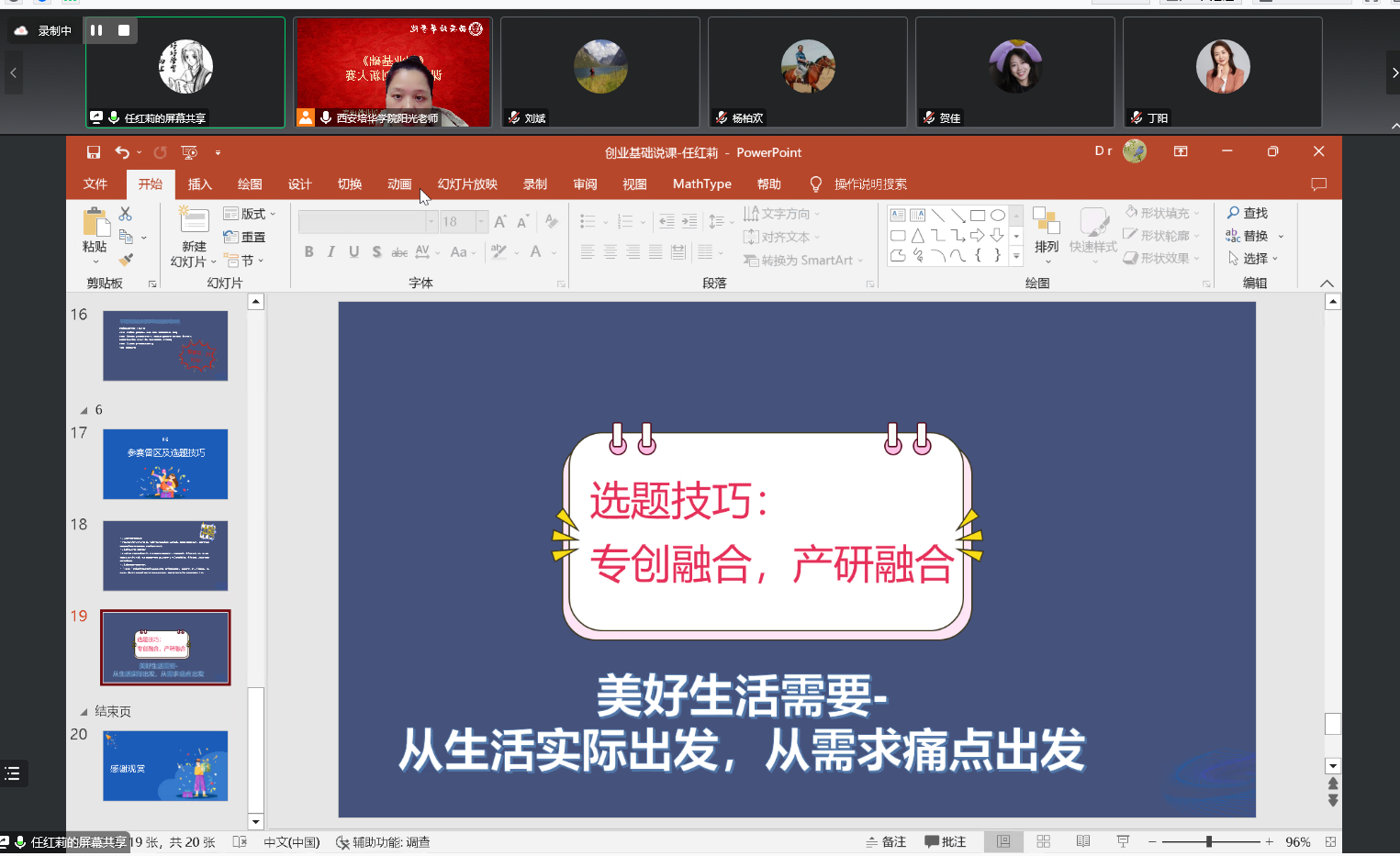 第五位选手王兰老师从生活中的创新引入创新对国家、社会、个人和创业而言的重要性,以及如何培养自身的创新能力和创新思维。