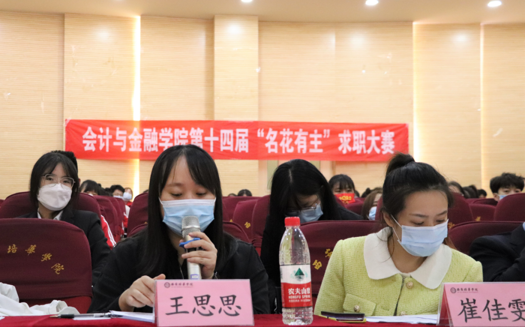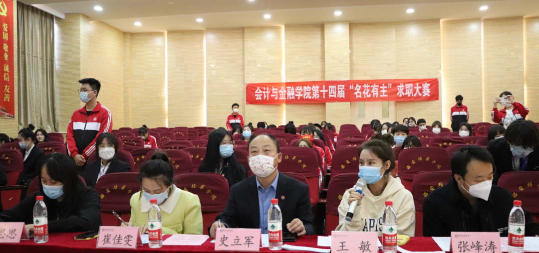 会计与金融学院第十四届“名花有主”求职大赛决赛在王莉同学与梁亦涵同学的主持下拉开了序幕。