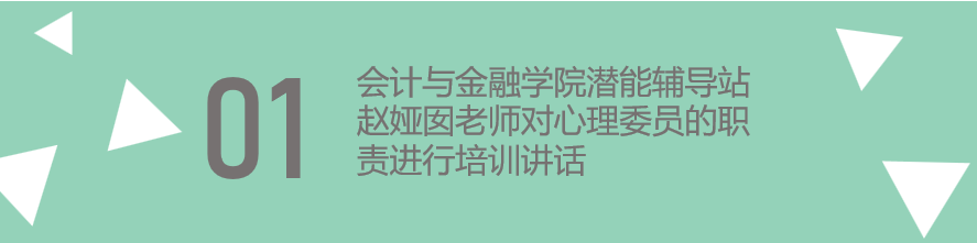 2022年10月19日下午19:00会计与金融学院学生潜能发展辅导站赵娅囡老师带领全体心理委员和舍长开展了线上心理委员和舍长培训,本次培训以“每个人都因自助而成长,因助人而快乐,因互助而不再孤独”为主题开展,下面让我们来看看本次培训的主要内容。