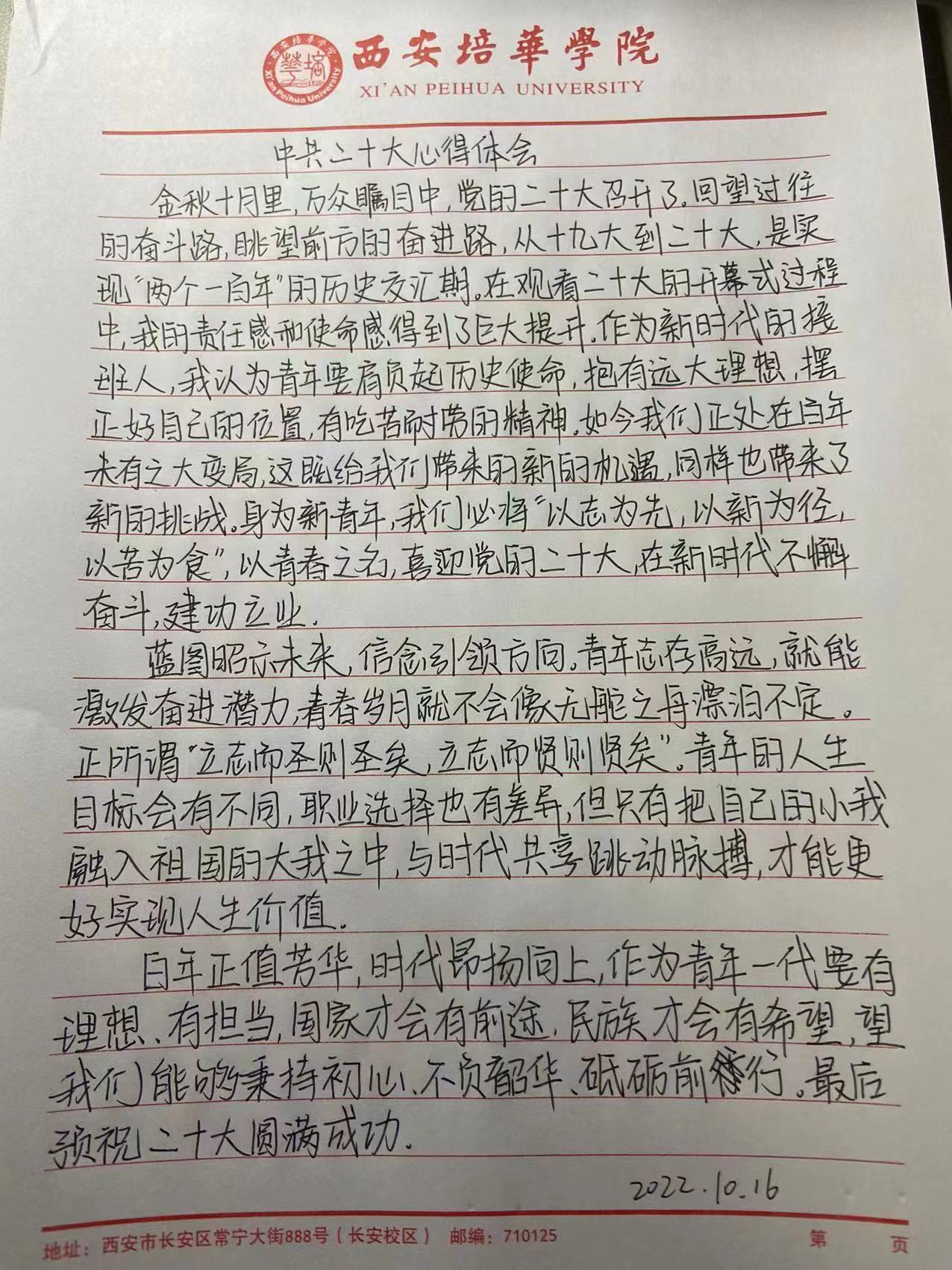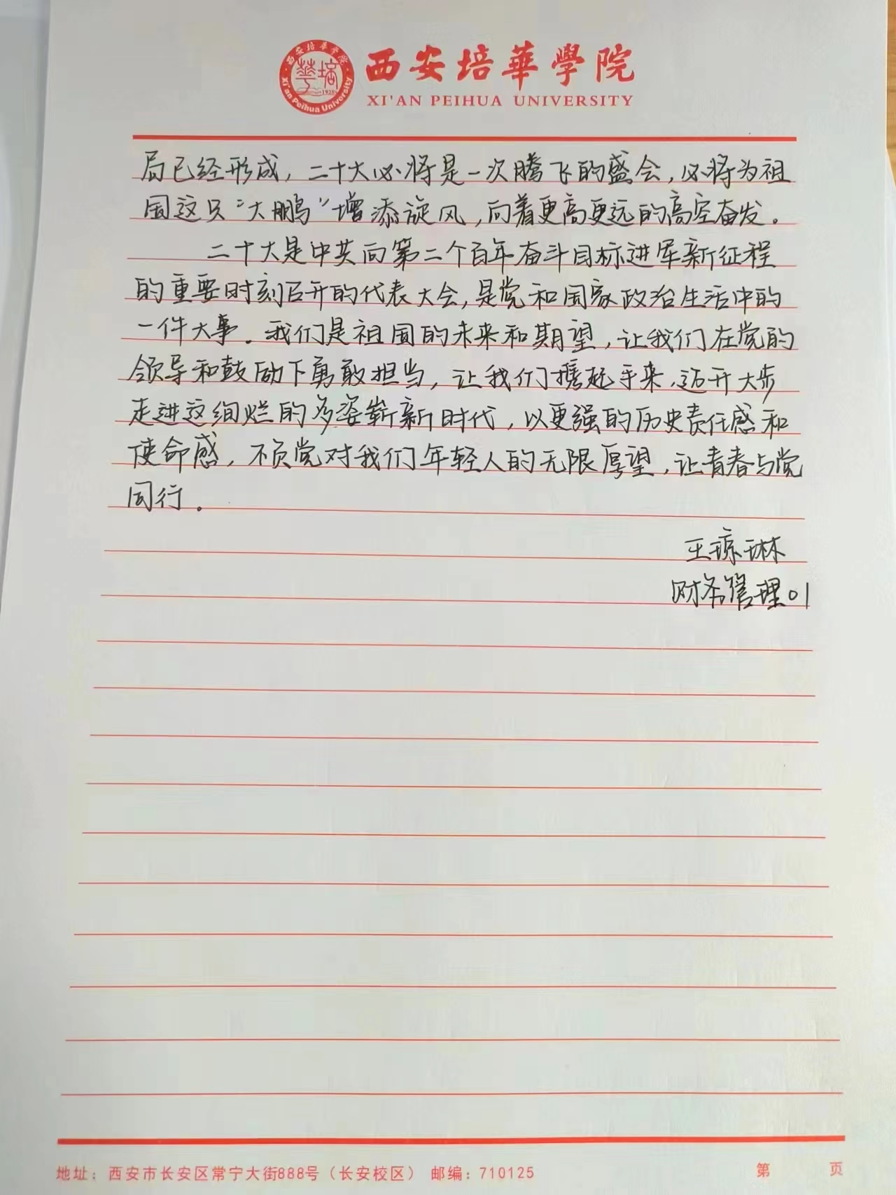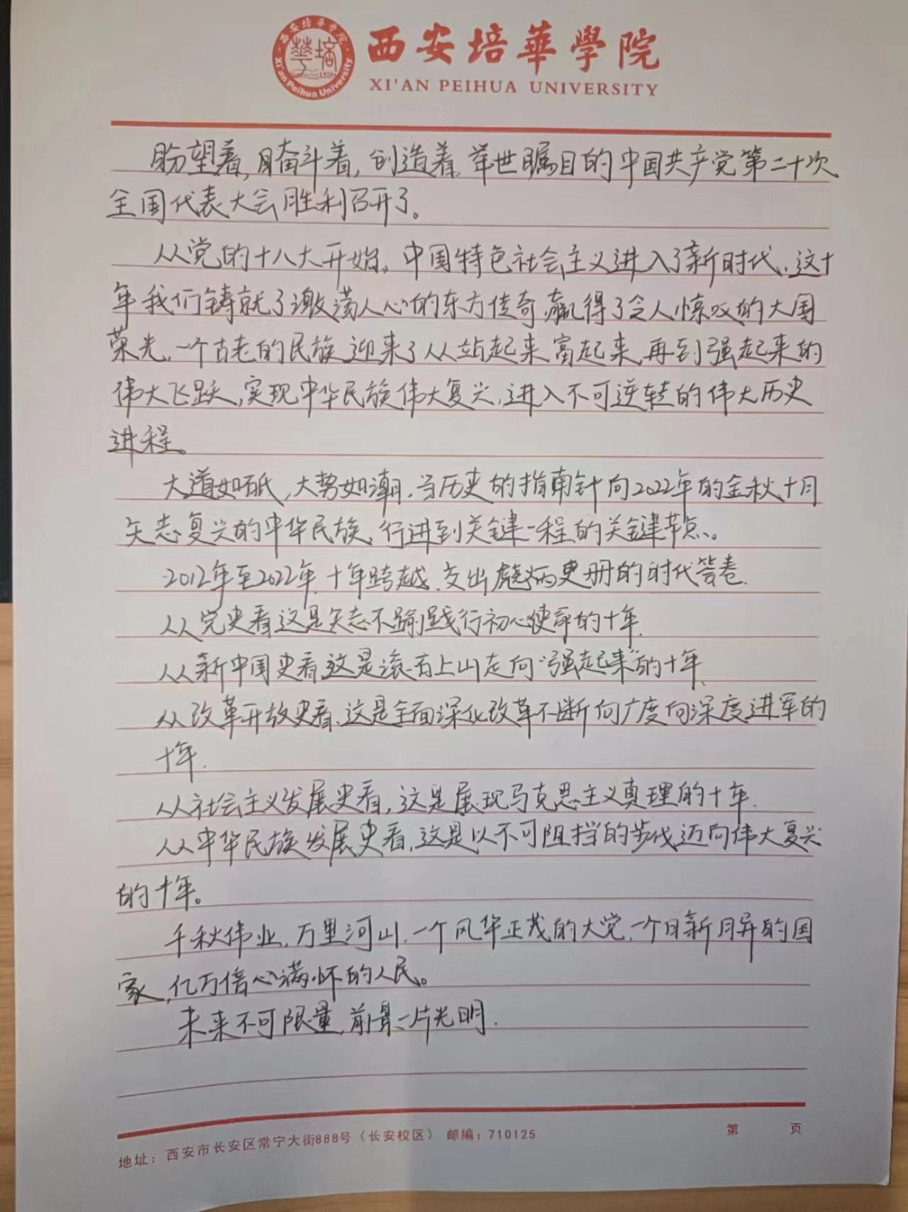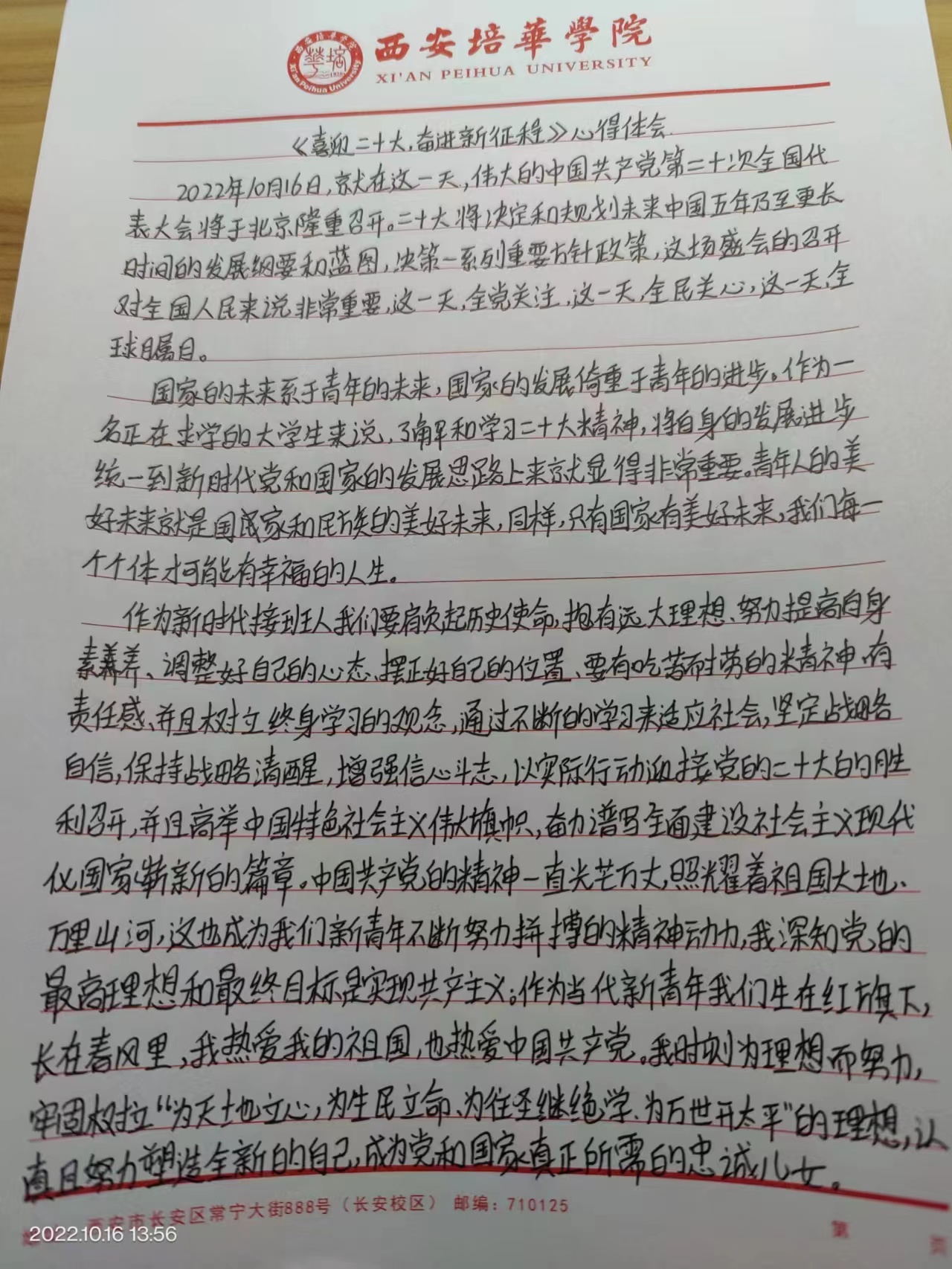 2022年10月16日,西安培华学院会计与金融学院学生会全体工作人员通过多种形式,开展丰富多彩的“学习二十大、永远跟党走、奋进新征程”主题学习教育活动,紧密围绕迎接学习宣传党的二十大主题活动,营造喜迎党的二十大的浓厚氛围!