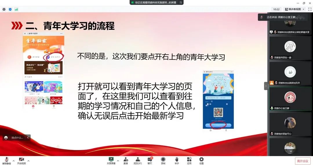 办公室负责人王蒙讲解青年回家工程、青年大学习等相关工作