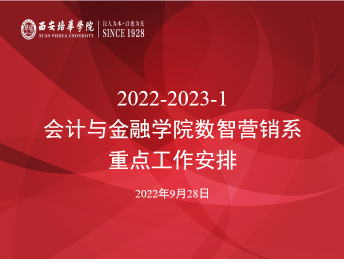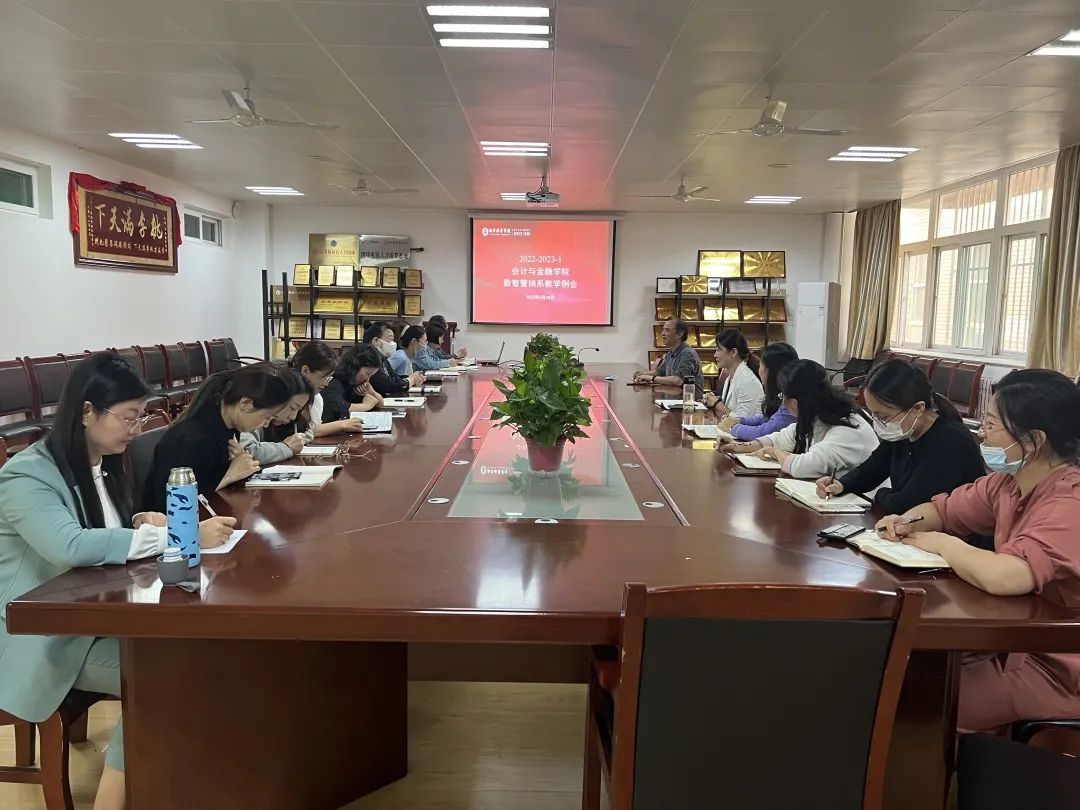 朗朗金秋,丹桂飘香,在新学年到来之际,为了不断提高教学成效,加强各教研团队合作,进行应用型课程改革。2022年9月28日中午,会计与金融学院数智营销系在2115会议室召开近期重点工作推进会及期初教学例会。会议由市场营销专业主任李亚子老师主持,会计与金融学院丁阳副院长及数智营销系全体教师参加了本次会议。本次会议主要议程为安排推进重点工作及期初教学相关工作情况了解。