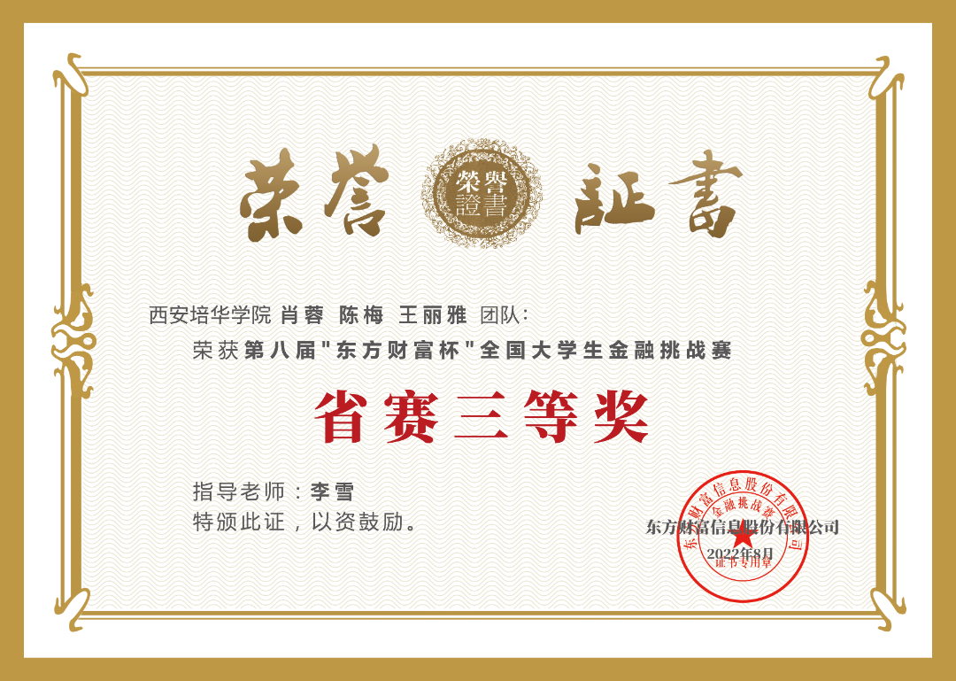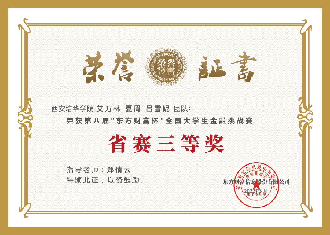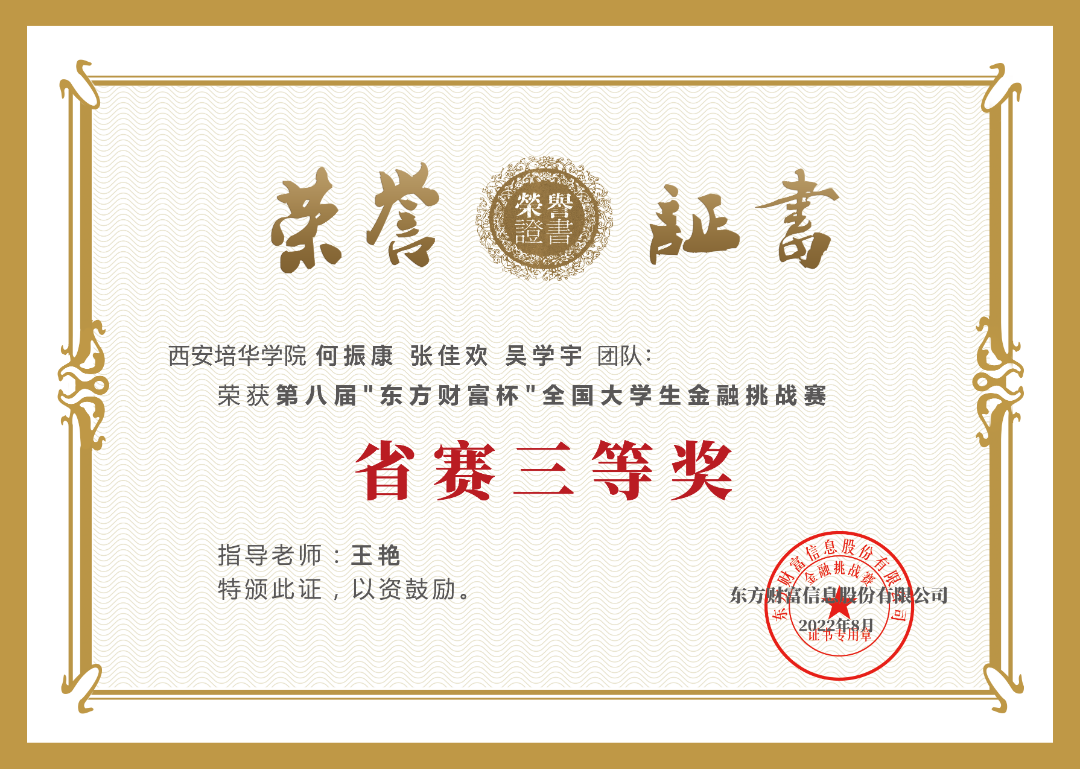 “东方财富杯”全国大学生金融精英挑战赛是由共青团中央青年发展部主办,东方财富信息股份有限公司、全国学校共青团研究中心承办,是面向全国大学生群体打造的具有高知名度、高含金量及广泛社会影响力的金融创新实践大赛。我院学生积极响应号召,并在大赛中取得了傲人的成绩,下面让我们一起来看看吧!