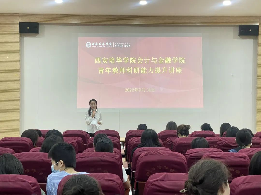 9月14日14:30,会计与金融学院在博远楼J201举办以“激发科研活力,助力青年教师成长”为主题的青年教师科研能力提升讲座,由科研干事贺佳主持,孟君教授担任主讲,产学研副院长丁阳及我院青年教师共57名参加。
