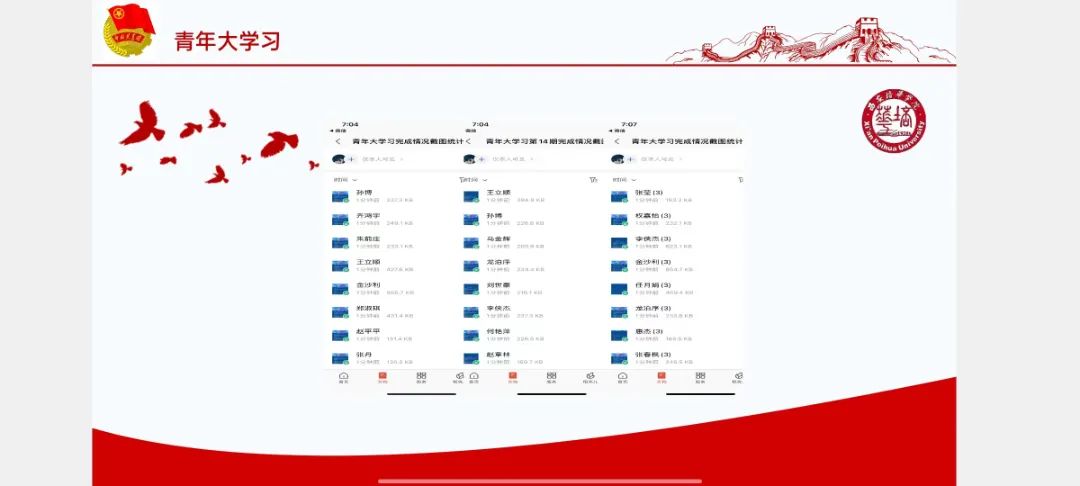 班级活动展示与青年大学习有序进行,对于青年大学习同学们也是做到了“不拖延”的好习惯,能够及时的完成。