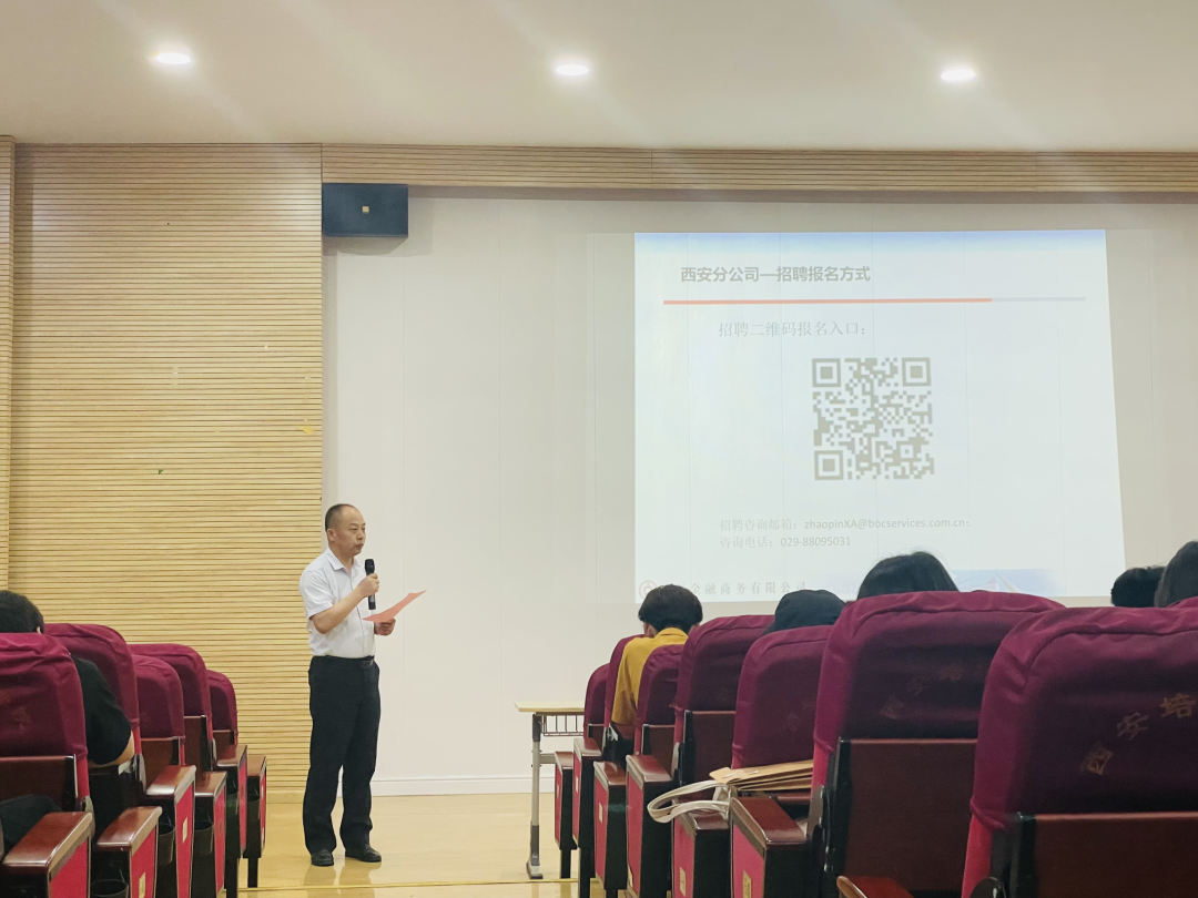 中银金融商务有限公司人力部门专员刘鹏讲述了公司的简介:中银金融商务西安分公司于2015年7月在浐灞金融商务区注册成立,是四大国有商业银行唯一落户西安的客户服务中心,现有员工1100余人。公司通过电话呼入、呼出、在线客服等方式,为中国银行集团海内外客户提供中、英文服务。